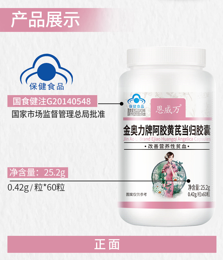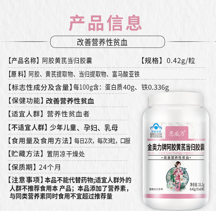 Капсулы молодости, от анемии, Экстракт Астрагала, Ejiao, angelica extract, ferrous fumarate 60шт