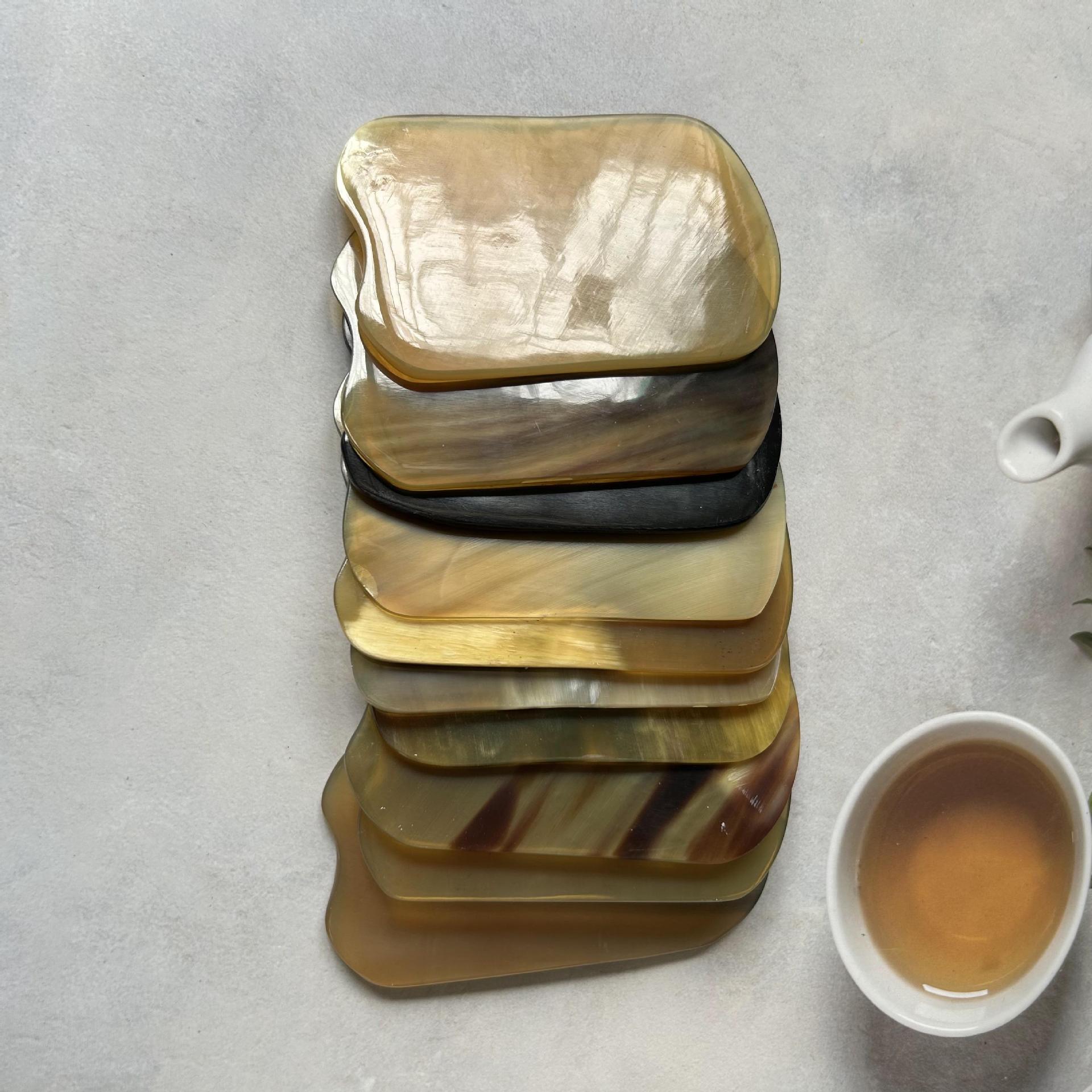Он изготовлен из лучшего материала желтого рога, который очень приятен на ощупь. Желтый рог оказывает уникальный эффект на выравнивание румяной кожи и восстановление ее здоровой эластичности. Каждый из них имеет разные цвета и текстуры, в основном желтый полупрозрачный, жесткий текстура и лечебная ценность Подобны рогу буйвола.