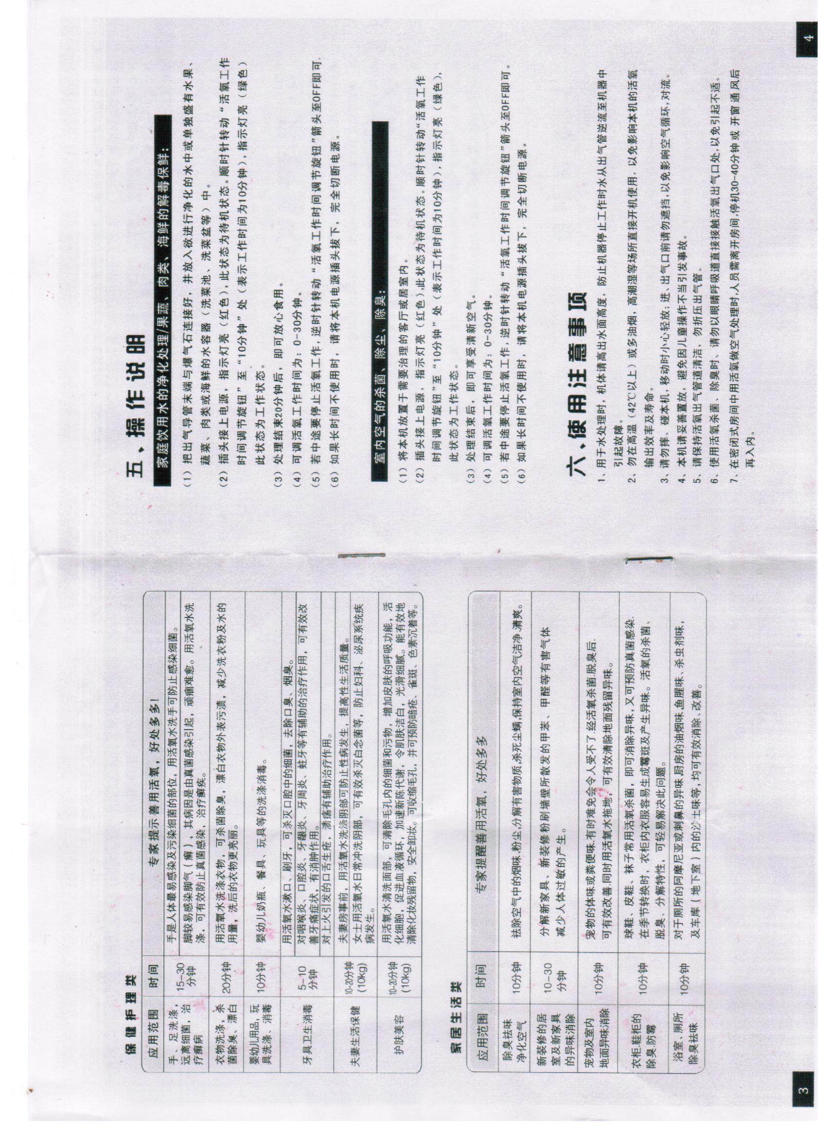 Поместите трубку с насадкой в емкость с водой и задайте время работы. Для одного стакана воды ― 5мин, для 10 литров воды -15-20 минут. После обработки рекомендуется, выдержать воду не менее 10 минут Приготовленную воду можно использовать для приготовления пищи (первые и вторые блюда), напитков (чай, кофе, компоты, отвары), мытья фруктов, овощей, для различных бытовых нужд, принятия ванн, умывания и полоскания, уборки квартиры полива комнатных растений. Обработанная озоном вода становится намного мягче, без каких-либо привкусов, т.к. хлор разлагается, коллоидные растворы железа, алюминия, марганца и меди выпадают в осадок и подлежат удалению