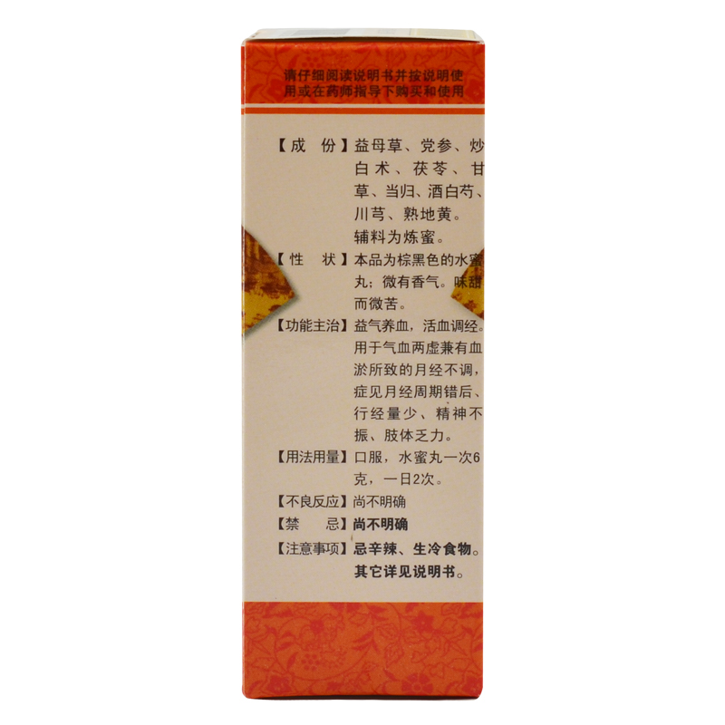 Состав: пустырник японский (yi mu cao), кодонопсис мелковолосистый (dang shen), атрактилодес крупноголовый (обжаренный) (bai zhu), пория кокосовидная (fu ling), солодка уральская (gan cao), дудник китайский (dang gui), пион белоцветковый (обжаренный на вине) (bai shao), гирчовник влагалищный (chuan xiong), приготовленная ремания клейкая (shu di huang).