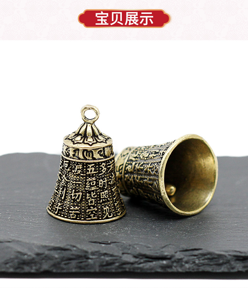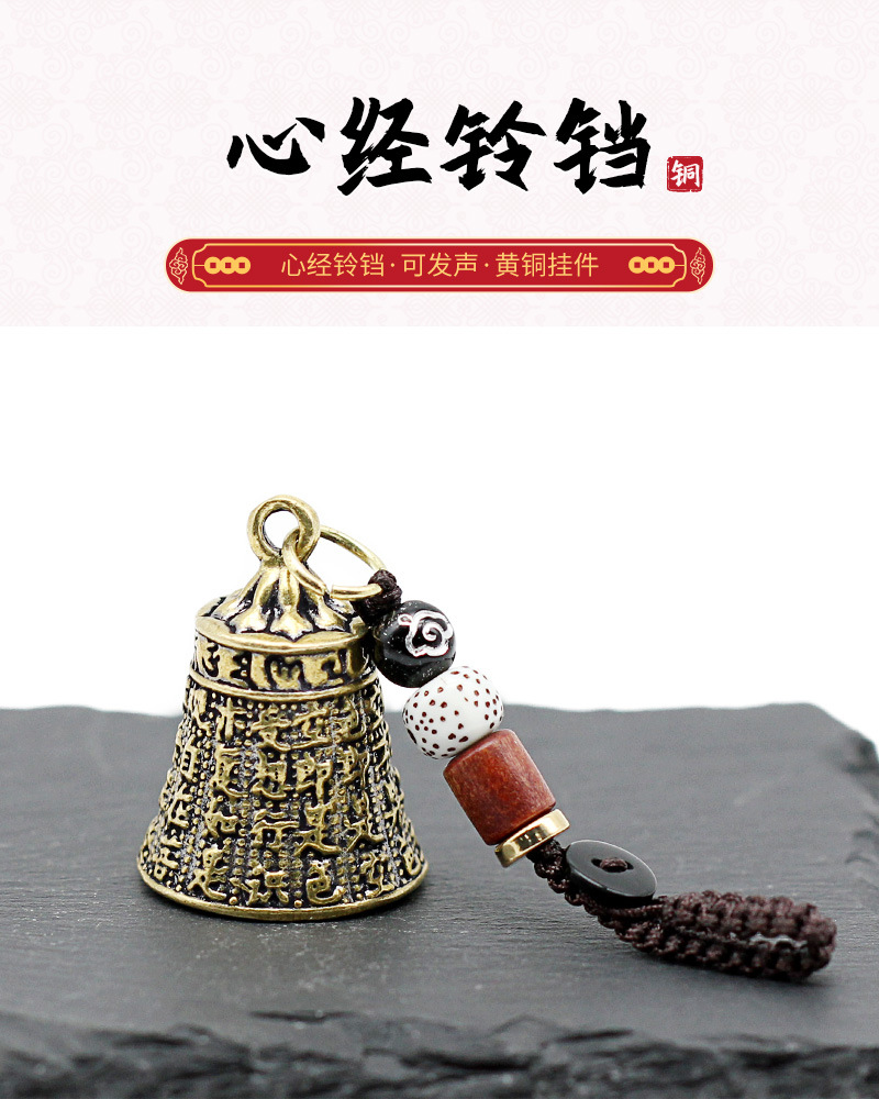 Латунный колокольчик Священное Писание, веревка из сандалового дерева, автомобильный брелок кулон в старинном стиле для мужчин и женщин , маленькое украшение в стиле фэн-шуй, подвеска, декор.