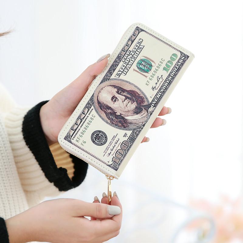 Довгий гаманець клатч портмоне на блискавці з принтом грошей, 100 доларів США, євро. 19х10х2.5см