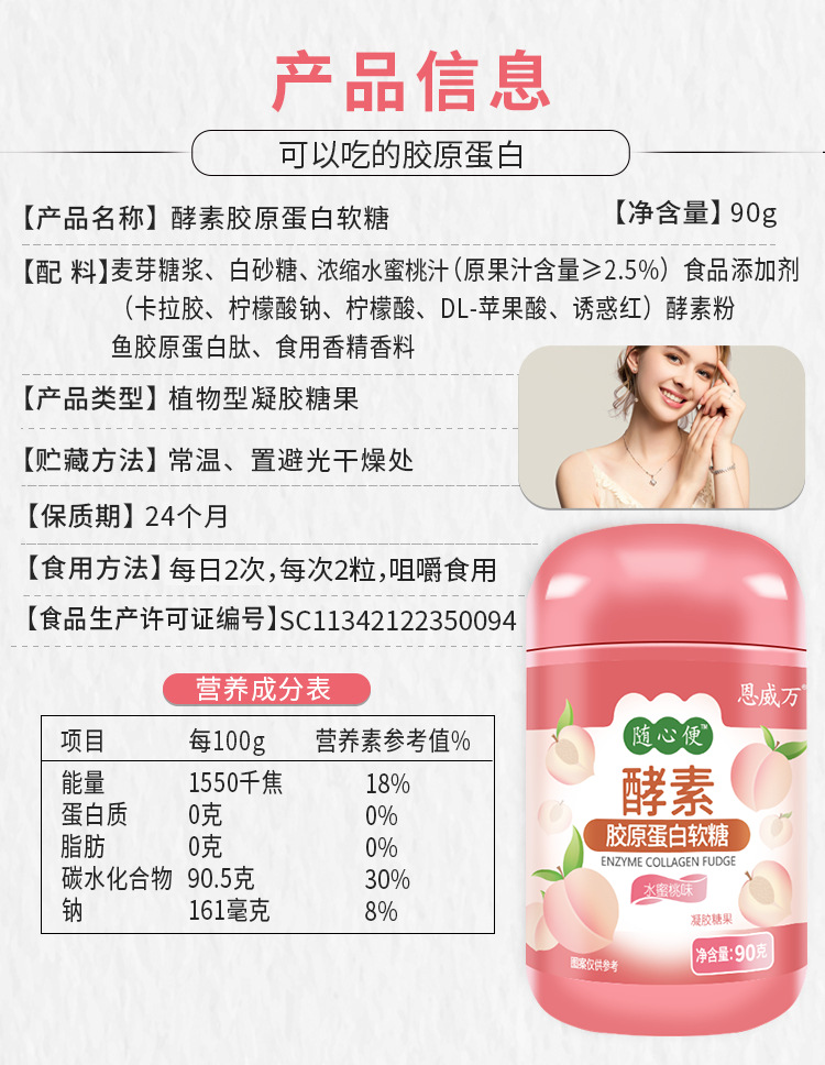 ферментні колагенові жувальні цукерки зі смаком персика
