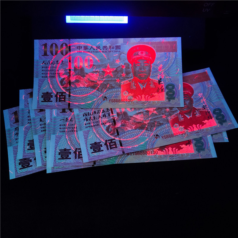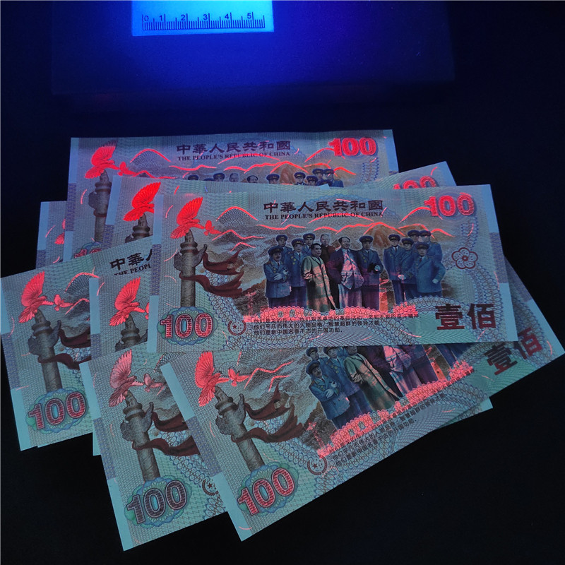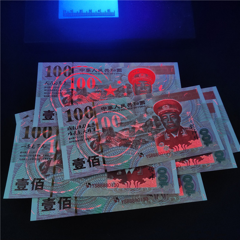 Выдающиеся особенности: Сувенирная банкнота Памятная номинал 100 купонов . представляет собой сувенирную банкноту, не имеющую номинала в обращении. В дополнение к защитной ленте, банкнота также может светиться УФ-излучением под фиолетовым светом, открывая уникальные и интересные подводные светящиеся изображения.