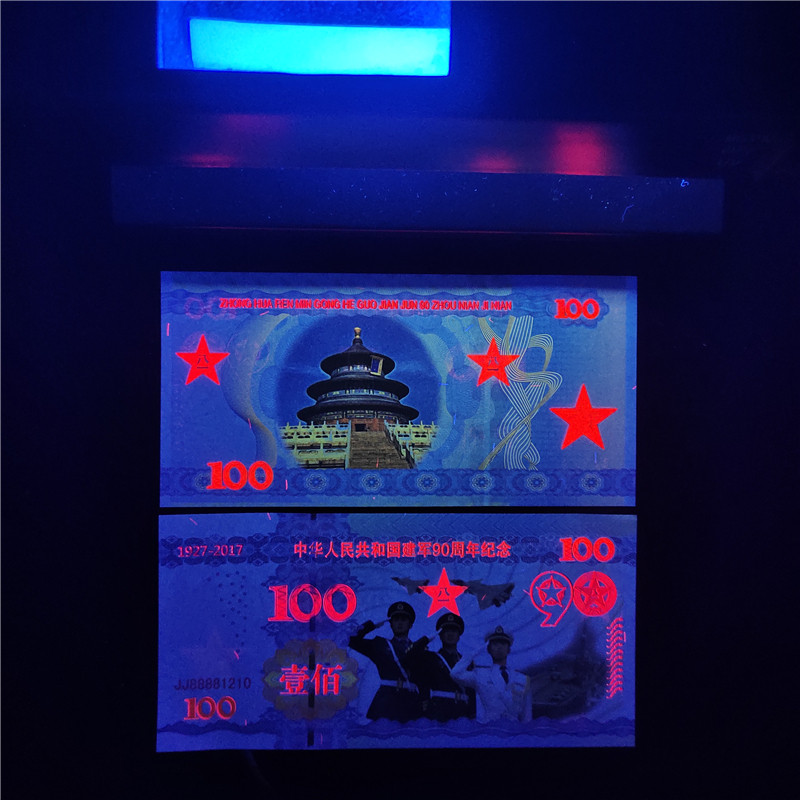 Выдающиеся особенности: Сувенирная банкнота Памятная номинал 100 купонов . представляет собой сувенирную банкноту, не имеющую номинала в обращении. В дополнение к защитной ленте, банкнота также может светиться УФ-излучением под фиолетовым светом, открывая уникальные и интересные подводные светящиеся изображения.