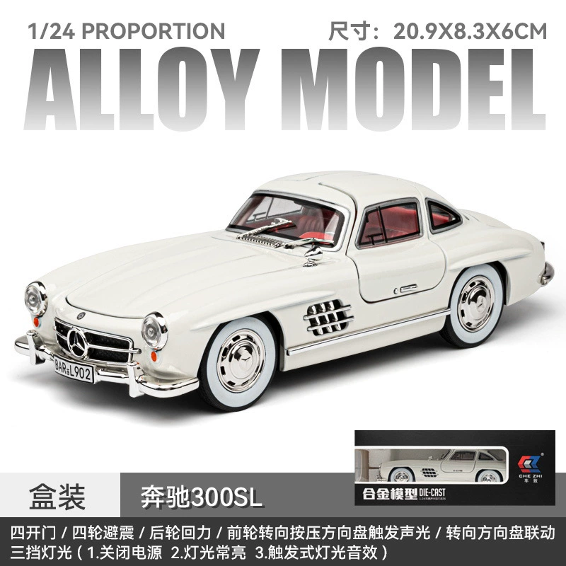 Эта модель автомобиля Mercedes 300 SL в масштабе 1:24 станет идеальным предметом коллекционирования для поклонников роскошных автомобилей и тех, кто ищет интерактивную и высокодетализированную модель.