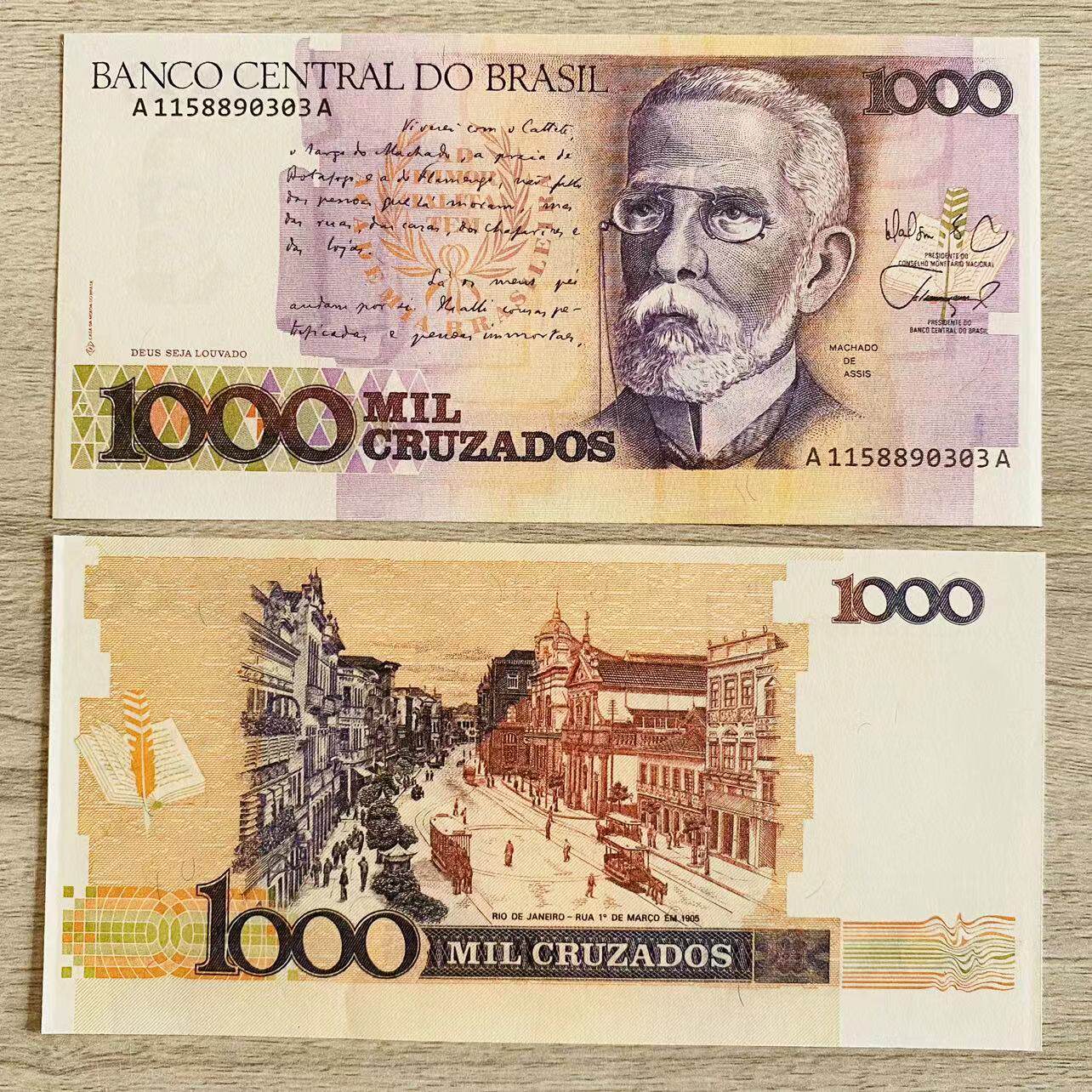 Коллекционная банкнота Бразилия 1000 крузадо 1987-1988. UNC, Не бывшая в обращении Коллекция банкнот Абсолютно новые
