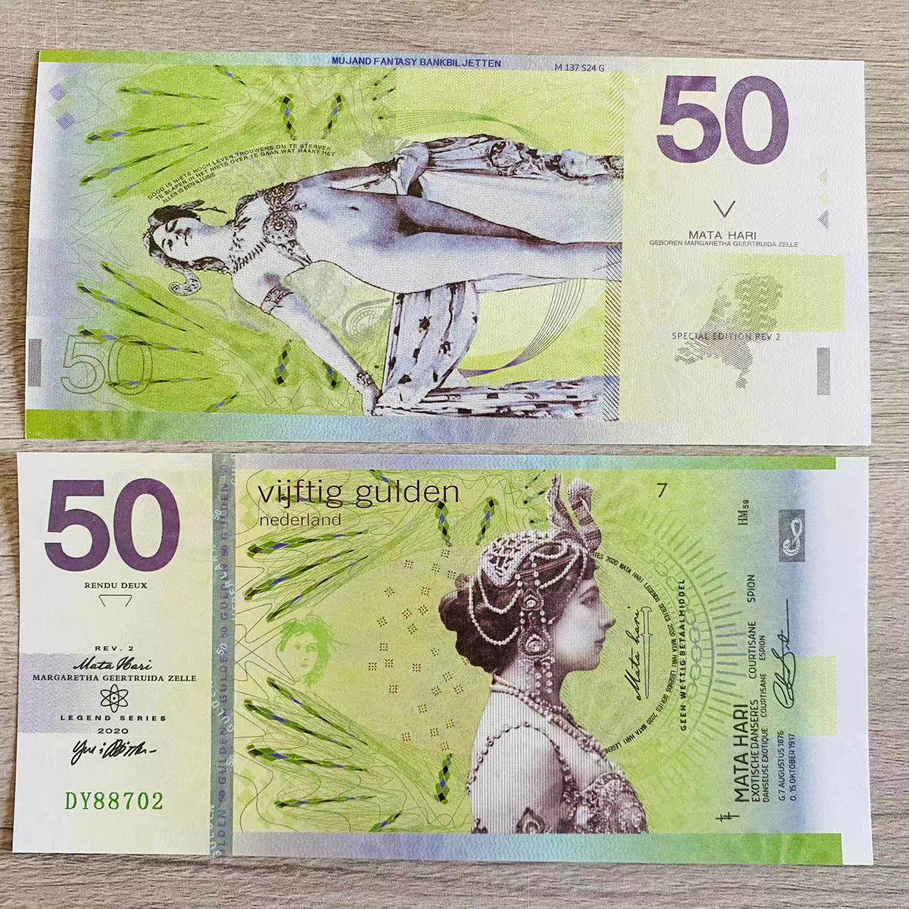 Банкнота Нидерланды, 50 гульденов, частная серия, 2020г Мата Хари (Маргарета Гертруида Зелле) UNC