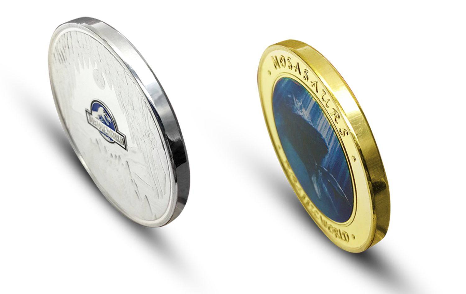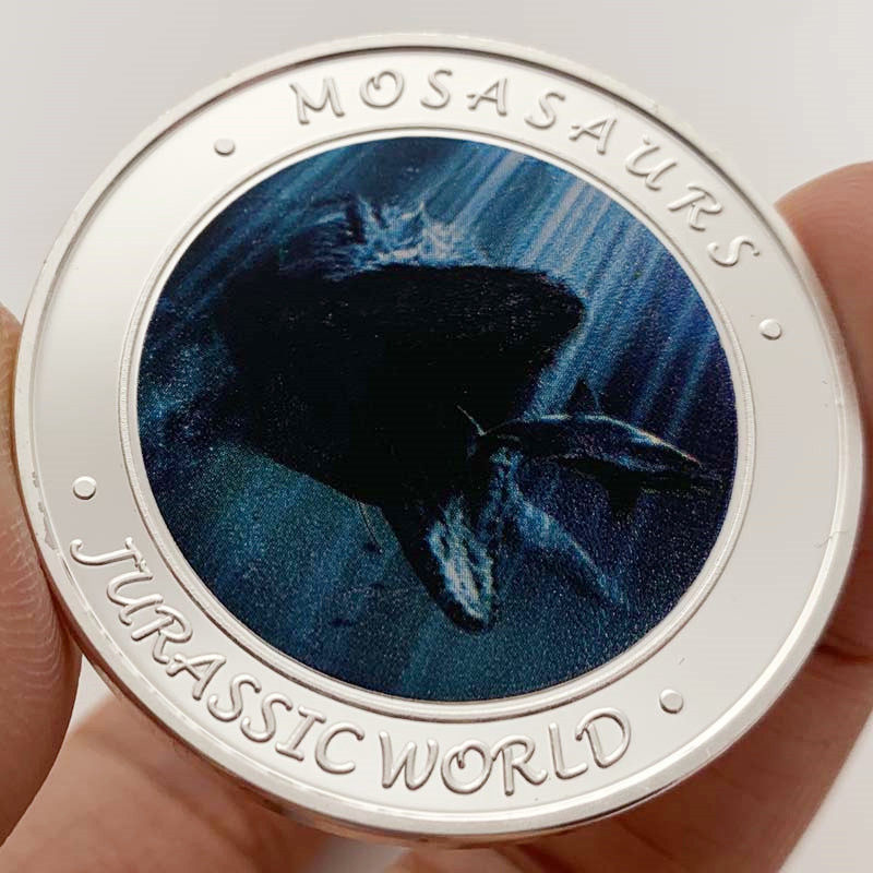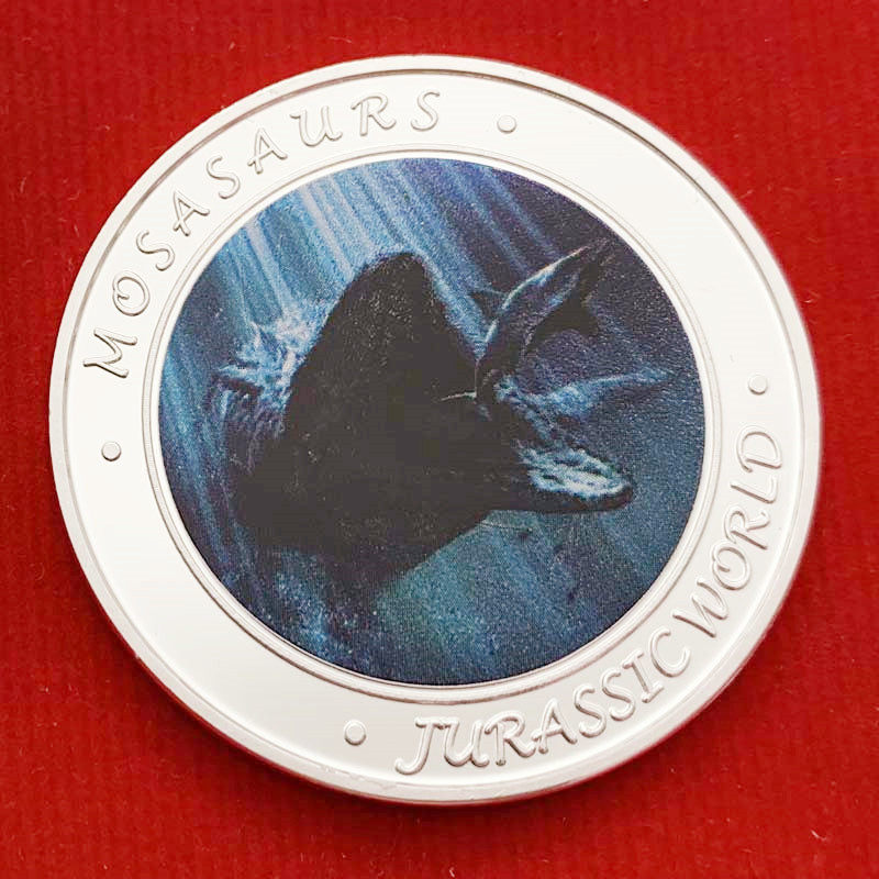 Сувенирная монета "Мозазавр" (Mosasaurus) сильвер из серии «Парк Юрского периода 2»