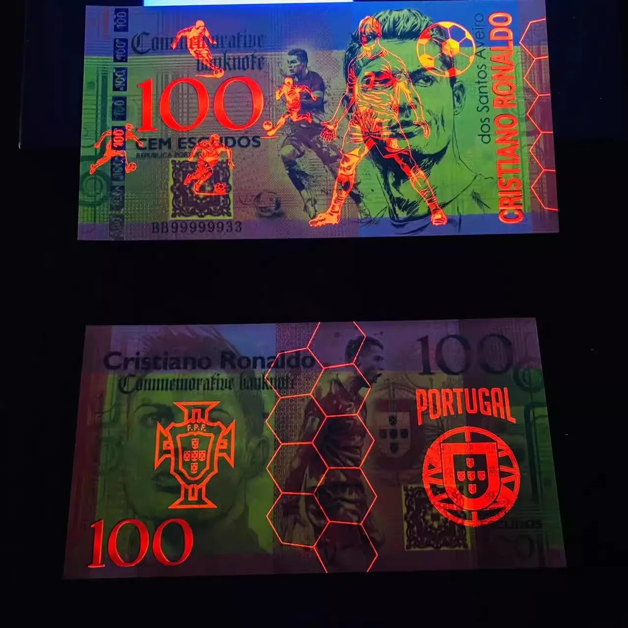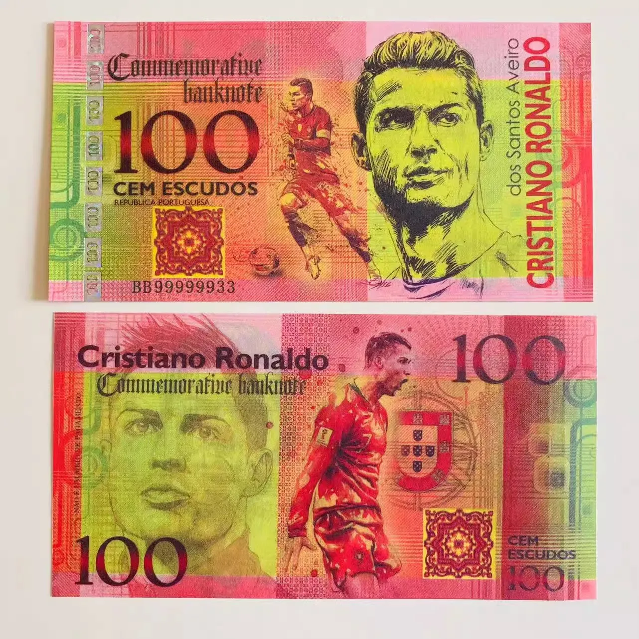 Сувенирная банкнота Португалия 100 эскудо Криштиану Роналду. Португалия. UNC