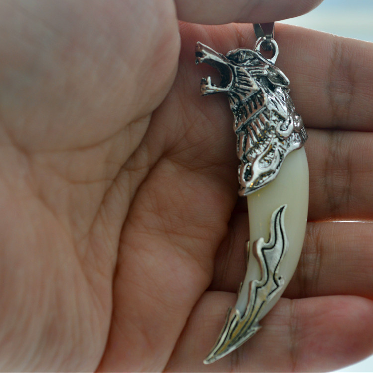 Подарок на Хэллоуин, мужское ожерелье с кулоном в виде зуба волка, украшения на удачу, классический амулет с головой волка в стиле панк