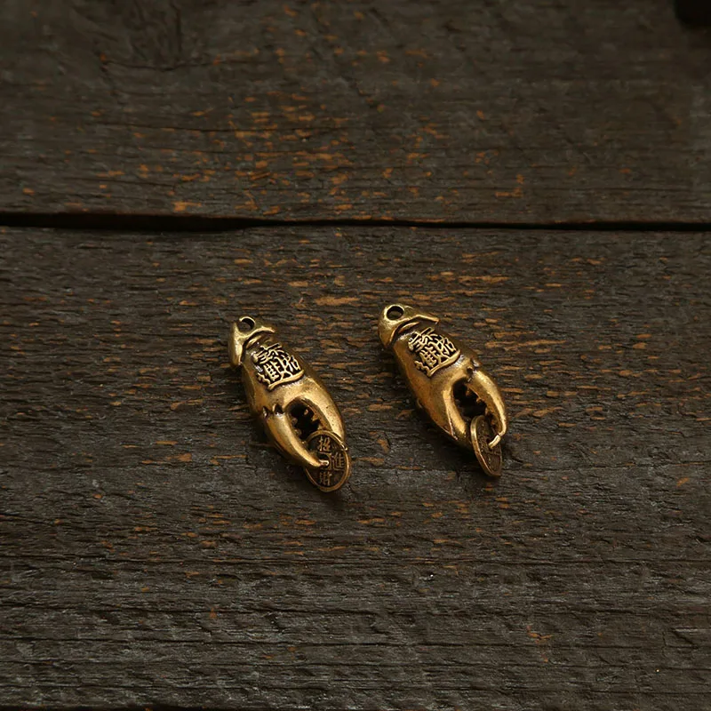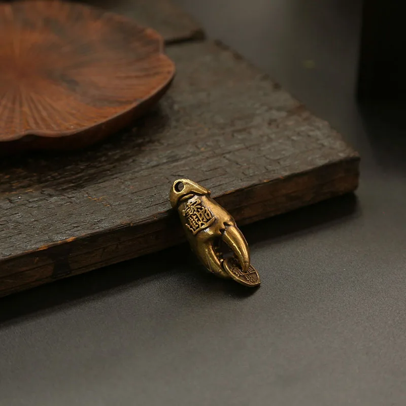 Подвеска из латуни "Клешня краба с монеткой" 4х1.5см, символизирует удачу и богатство