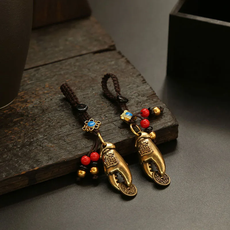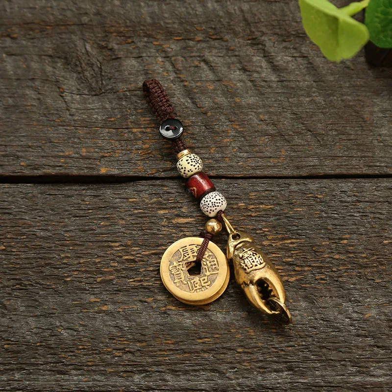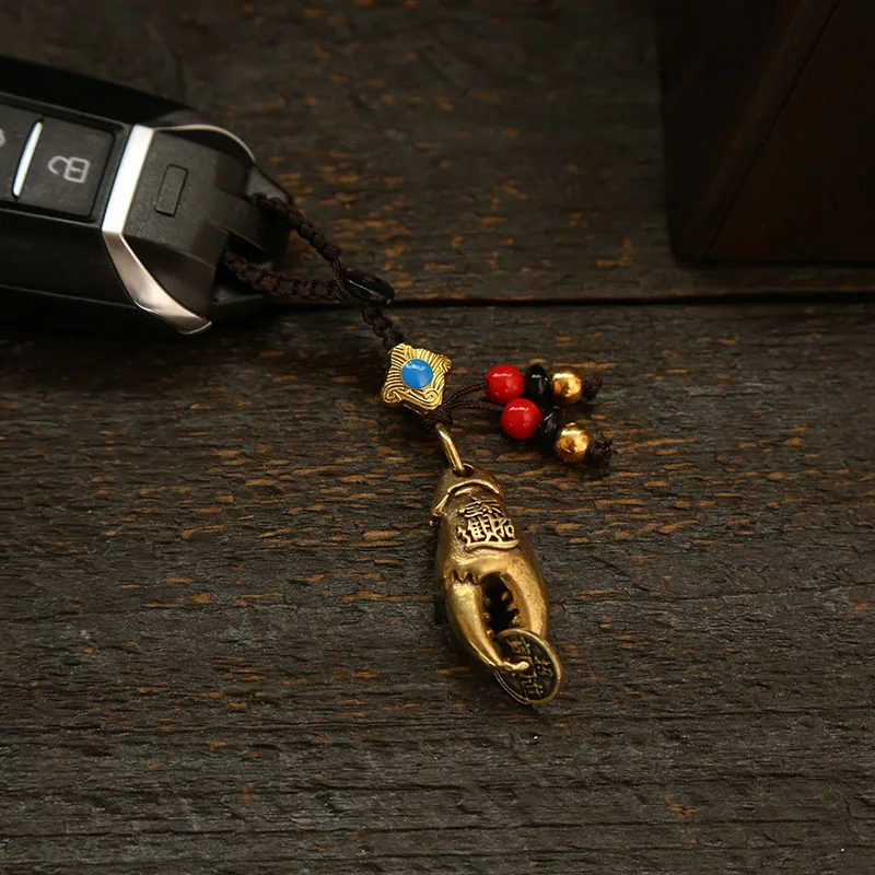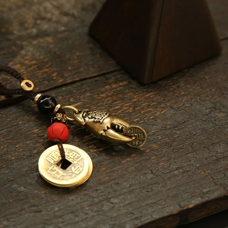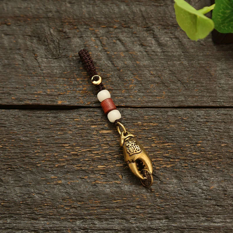 Подвеска в виде клешни краба с китайской монеткой, символизирует удачу и богатство, так как клешня краба ассоциируется с силой и защитой, а китайская монетка - с процветанием и финансовым благополучием. В китайской культуре монеты часто используются как талисманы для привлечения богатства.