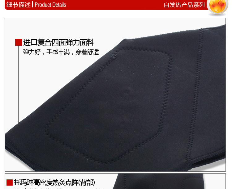 При изготовлении турмалиновой накидки на плечи использована самонагревающаяся ткань – 600D ткань, созданная по технологии "жидкого турмалина" с вплетенными в нити микрокристаллами турмалина, которые при нагревании от тела человека способны испускать инфракрасные лучи и отрицательные ионы.Также на 5-ти участках накидки (с двух сторон каждого плеча в области плечевых суставов и одна в области седьмого шейного позвонка позвоночника) используется лечебная ткань, представляющая собой мелко нанесенный турмалин и камни магнитного германия внутри по 4 штуки в каждой.