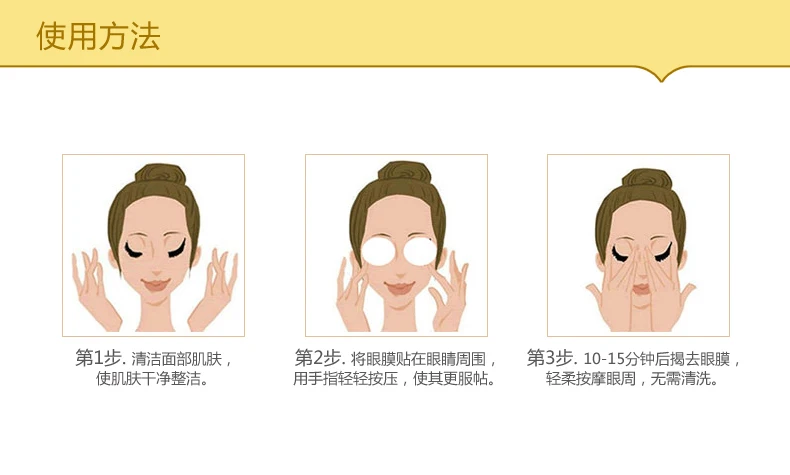 Применение : на чистую кожу вокруг глаз нанести маску, прижимая двумя пальцами вдоль век для лучшего контакта с кожей, снимают через 20 минут.