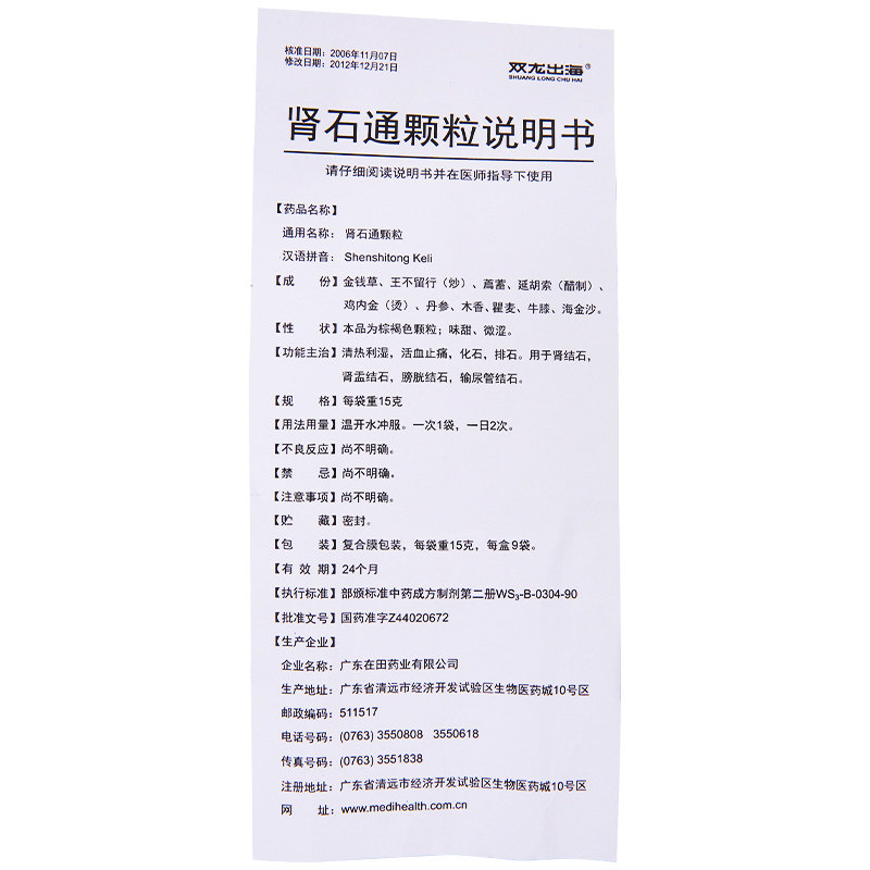 Курс лікування Вивести камені з бруньок за допомогою shenshitong можна за один або два курси (тривалість одного курсу — 15 днів), якщо їх розміри менш ніж 1,7 сантиметрів у поздовжньому та 1,1 сантиметра в поперечному діаметрі.