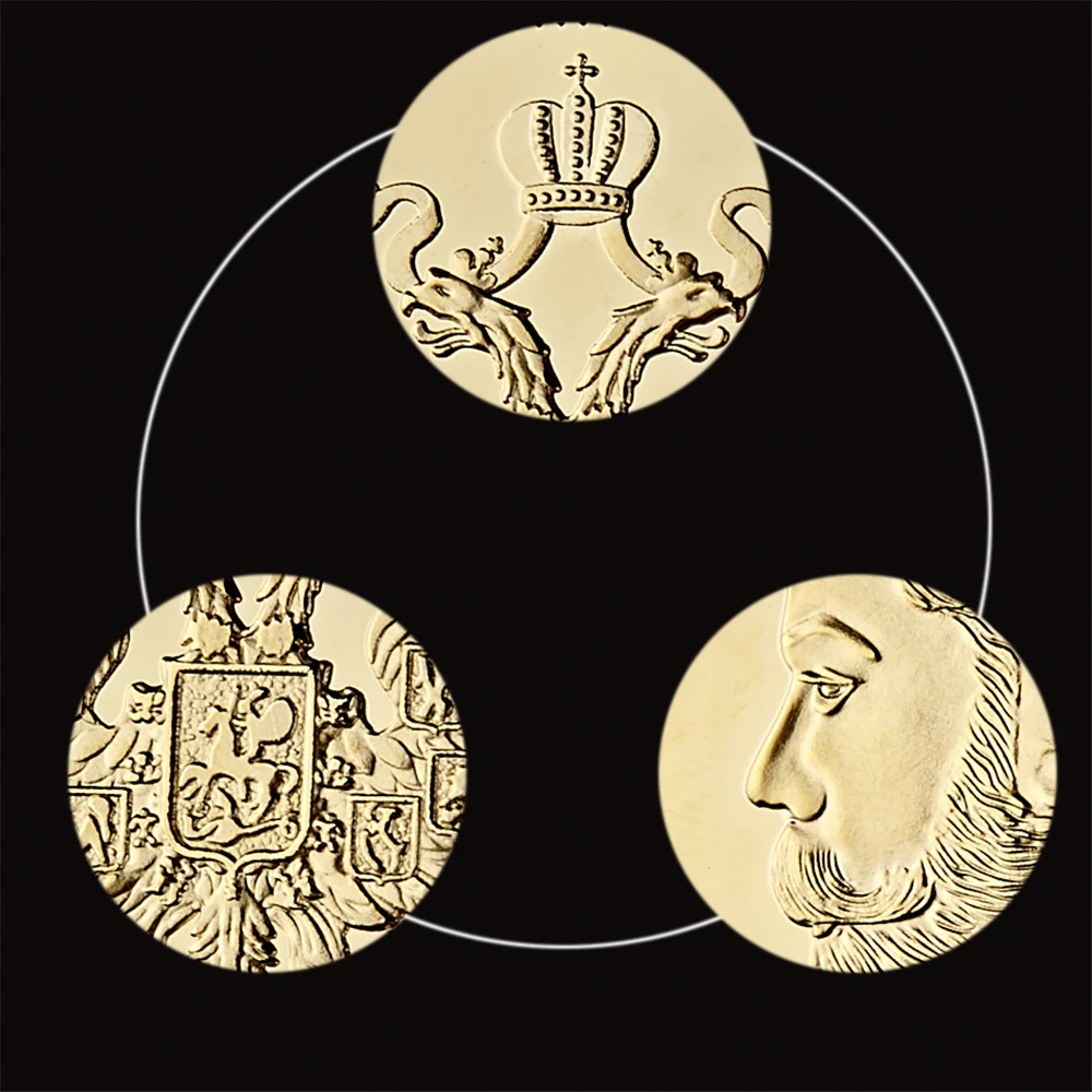 - Монета виготовлена з ювелірного сплаву та покрита справжнім золотом.