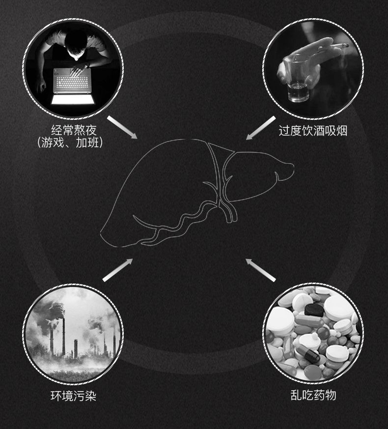 - інтоксикація печінки (медикаментозна, алкогольна, отруєння продуктами, грибами, важкими металами, продуктами нафтопохії);