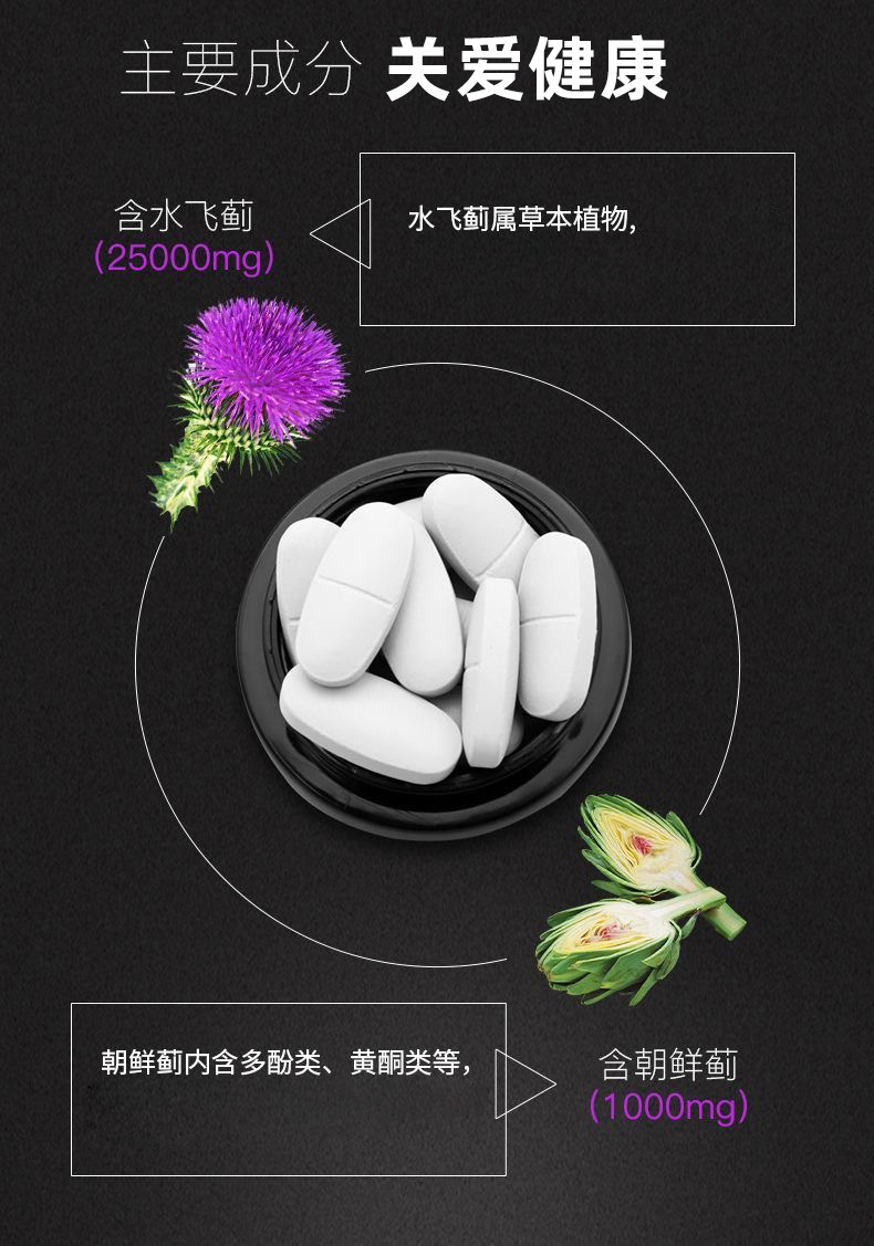 Склад: олія насіння розторопші, женьшень, корінь пуерарії, мальтодекстрим, корінь гарроти, екстракт годжі, екстракт касії, вітамін В1, В2, мікрокристалева целюлоза.