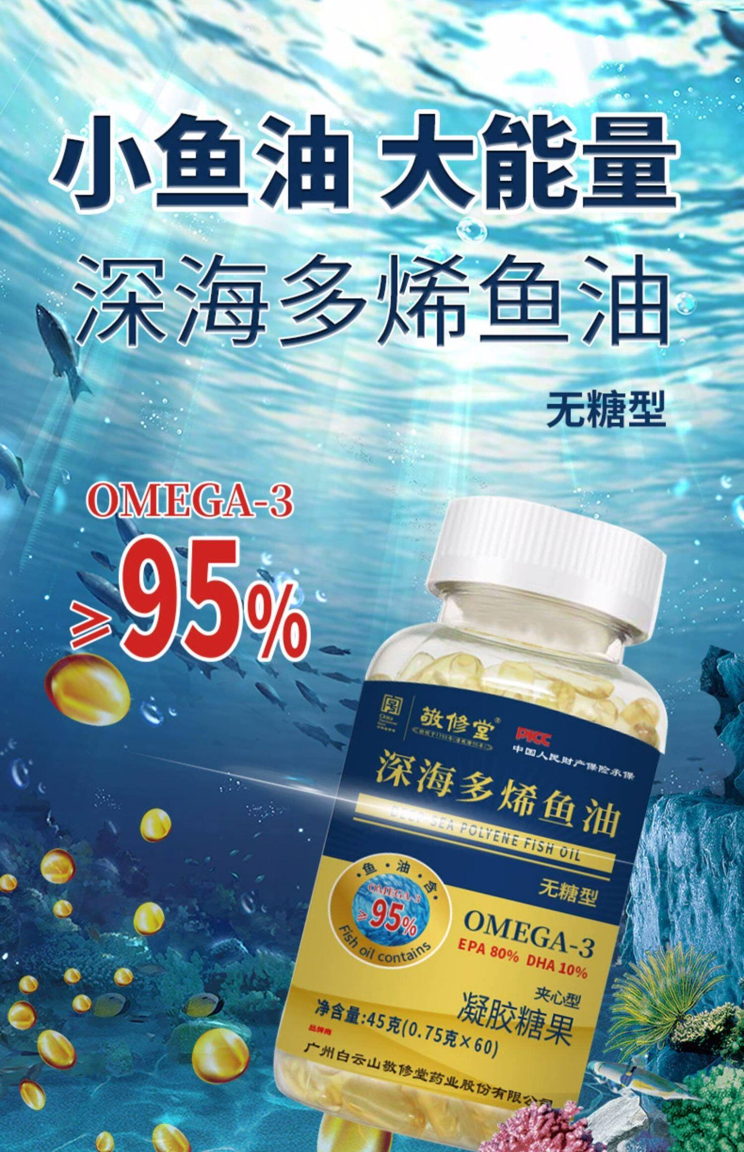 М'які капсули Риб'ячий жир 60 шт. х 0.75. Омега-3, Deep Sea Polyene Fish Oil