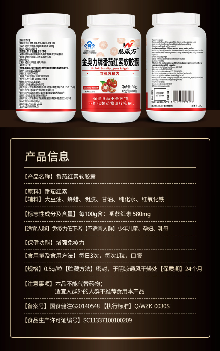 | Склад: | лікопін, олія соєвих бабів, желатин, гліцерин. Вміст ліковини (мг/г) ≥ 2.(11 мг) |