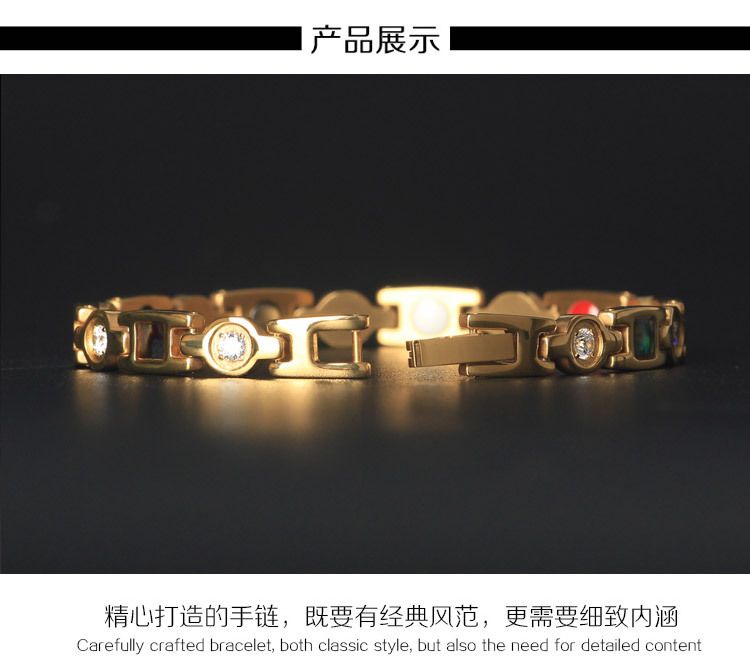 Жіночий магнітний титановий браслет Геліотіс (гематит) золото. мед сталь.