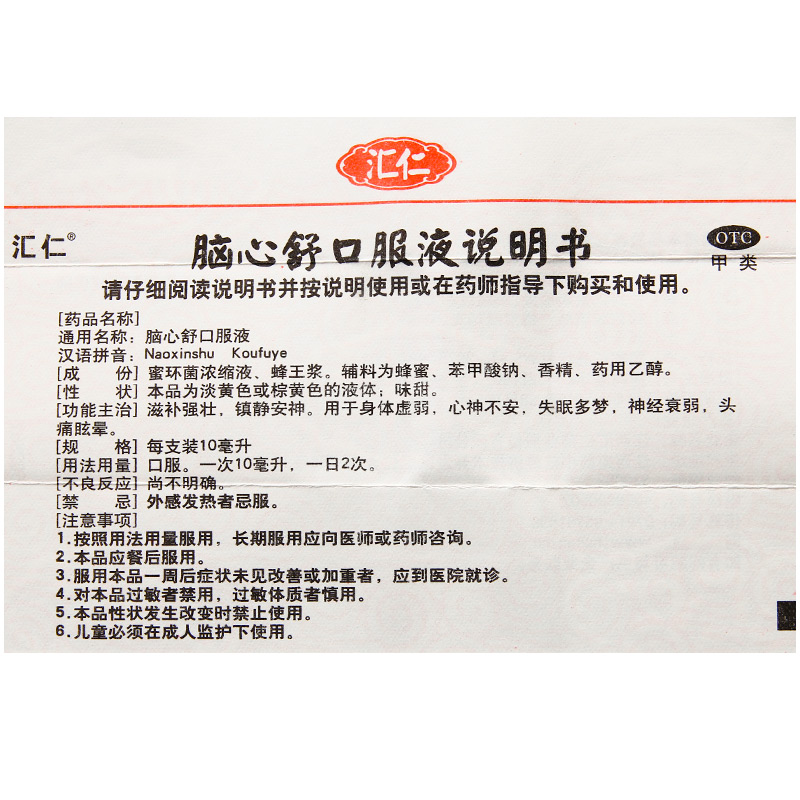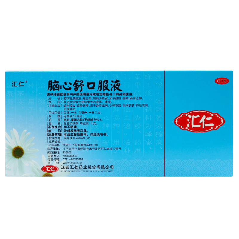 Еліксир для мозку "Наосіньшень" (Naoxinshu Koufuye) 10х10 мл Huiren «комфорт серця й мозку»,