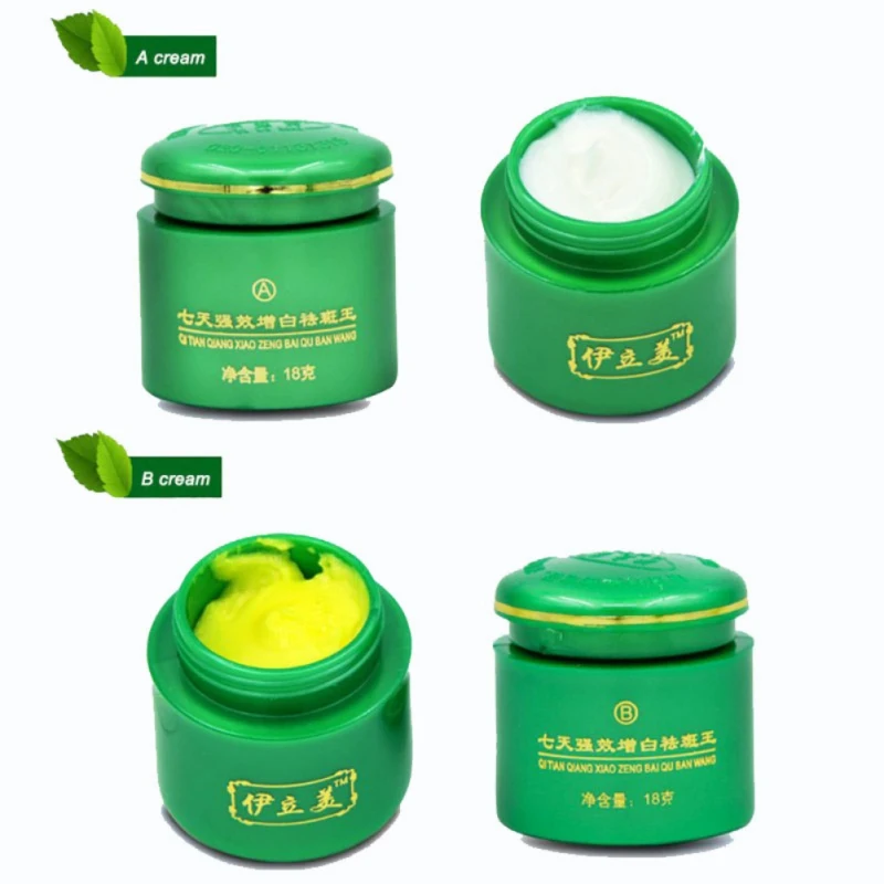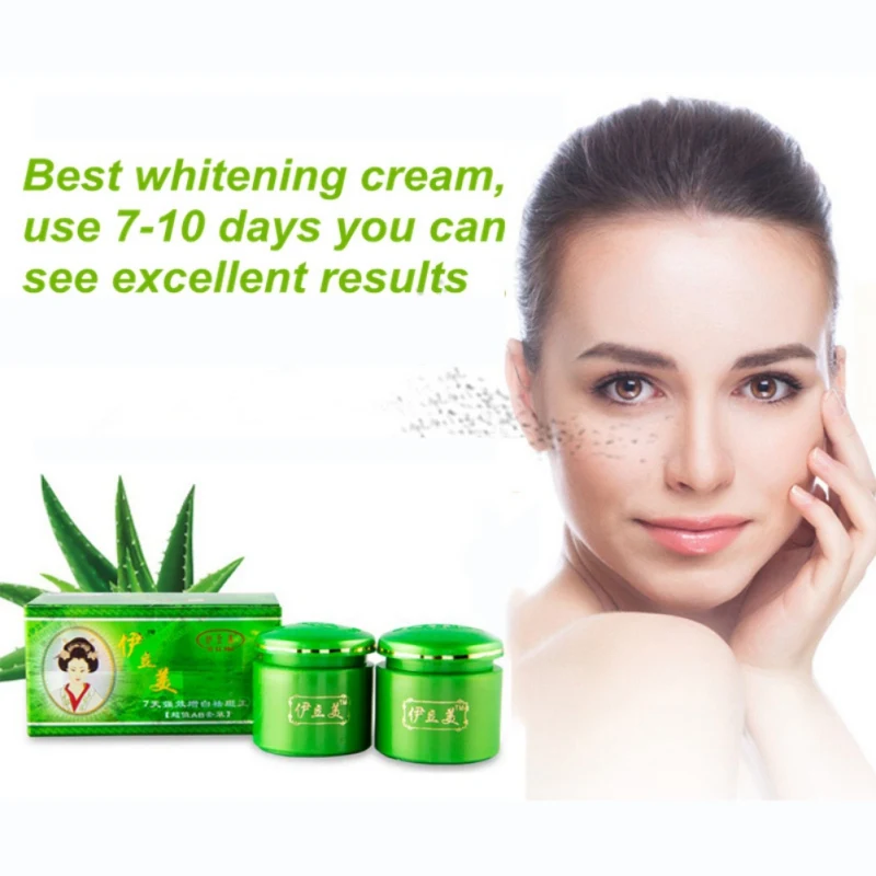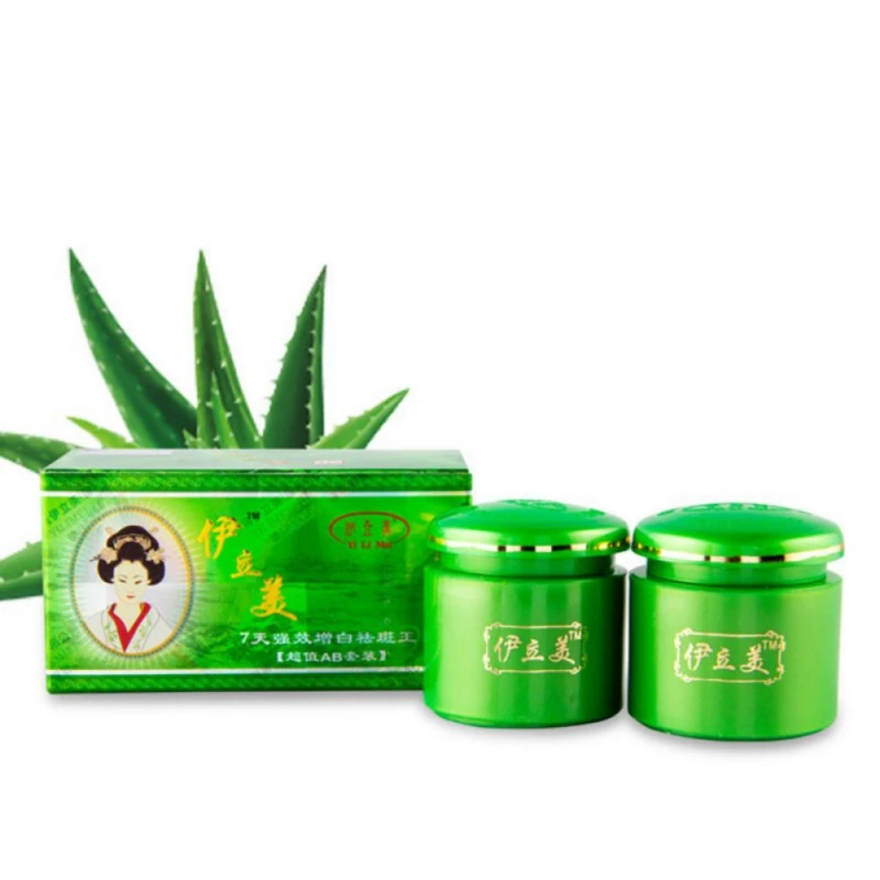 Дія: Відбілюючий набір з денного та нічного кремів з алое призначений для усунення чорних і жовтих плям, "старечого" пигментирования, веснянок. Крем живить епідерміс і протистоять виникнення висипів і прищів, знімають запалення, згладжувати зморшки, зволожують і освітлюють шкіру і запобігають появі плям.