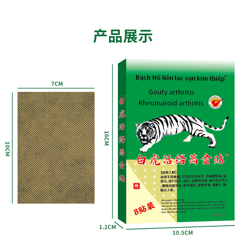 Пластир від болю В'єтнамський Білий Тигр 8 шт., протиревматичний (тигровий) болі в суглобах