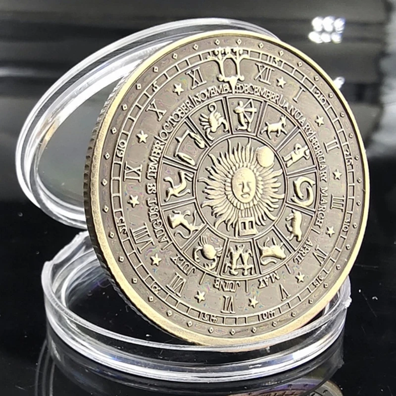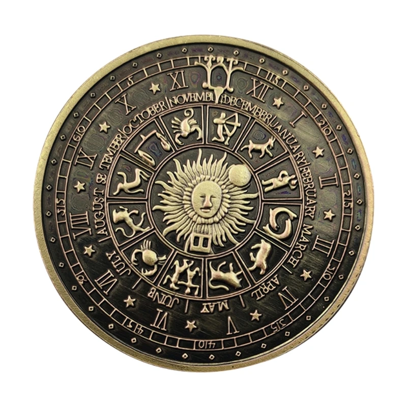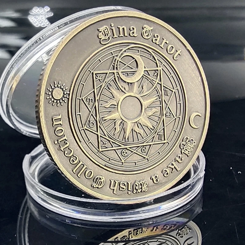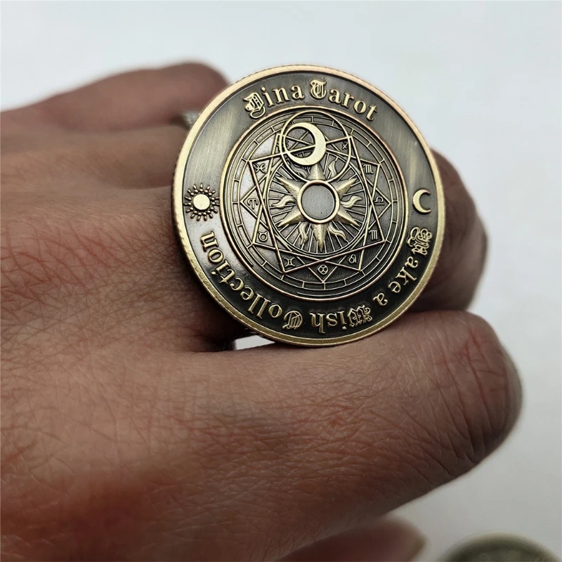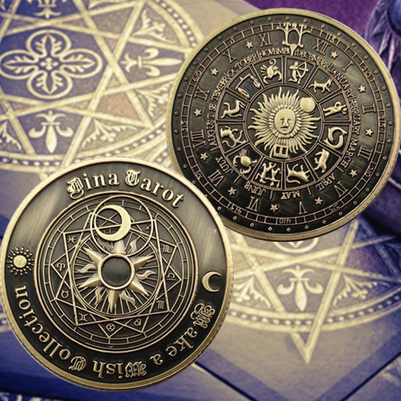 На зображенні представлена колекційна пам'ятна монета Таро (також відома як "Carrow Coin" або монета "Дві дев'ятнадцять сузір'їв"), призначена для ворожіння, колекціонування або як талісман на удачу.