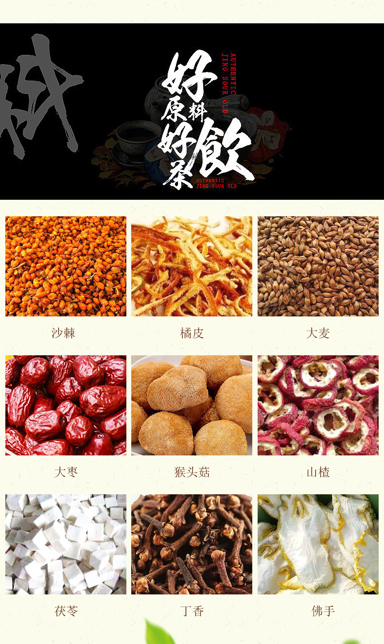 Сировина та інгредієнти Ячмінь Апельсинова корка Глов'ярник Юба Обліпиха Герициум Гриб Поріа Гвоздика Бергамот