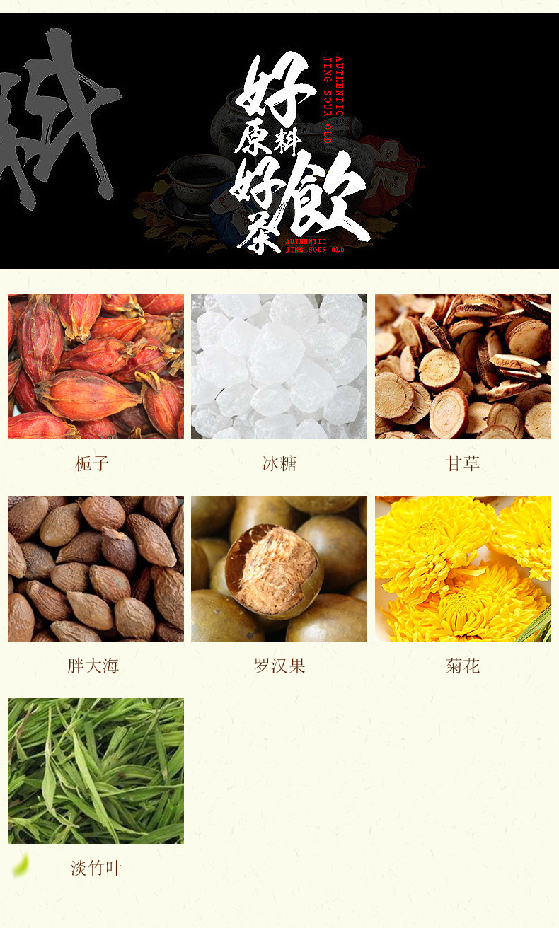 Сировина та інгредієнти Гарденія, кам'яний цукор, лакриця, морське жирне, мангустин, хризантема, бліде листя бамбука
