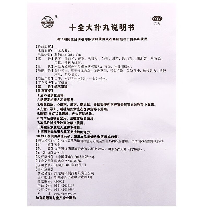 Склад: корінь ремінці клейкою приготованою (shu di huang), корінь дудника китайського (dang gui), корінь кодонопсису дрібноволосистого (dang shen), порія кокосова (fu ling), кореневище атрактилодеса грубого (bai zhu), корень астрагала перепончатого (huang qi), корінь півонії білоцвіткового (bais hao), корневище гирчовника влагалищного (chuan xiong), корінь солодки голої (gan cao), кора коричневика китайського (rou gui).
