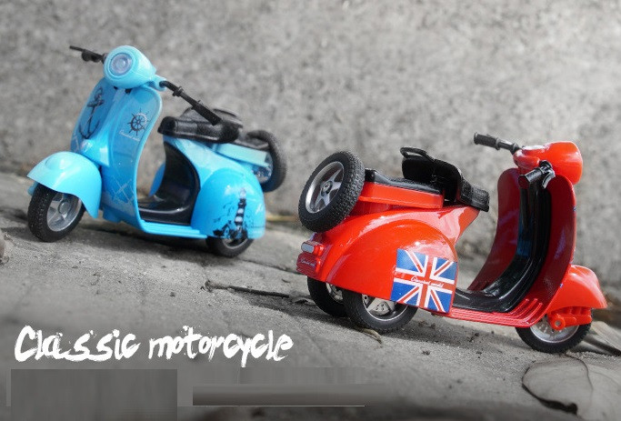 Модель ретро триколісний скутер, інерційний, світло, звук, Масштаб 1:14