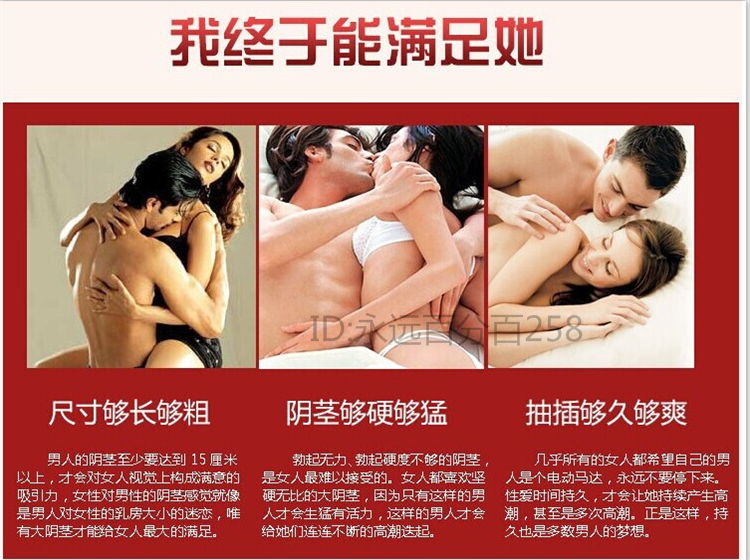 втома та не впливає на функцію нирок, ефект триває до 180 годин. Цей продукт має особливий рецепт. Больові, у яких кардіопання або гіпертензія, теж можуть приймати цей продукт. Добре допомагає лікувати простати. Склад — ретельно підібрані рослинні, мінеральні та тваринні інгредієнти. Після прийняття цього продукту бажання сексу пробудиться, і помітно зміцниться, попередній страх до бракуватого життя замінить пристрасть, Після прийняття засобу пініс може ерегувати вже за 10 — 15 хв, пініс збільшиться, твердість зміцниться. Довго приймаючи цей продукт, може збільшити пеніс на 2-3 см за один місяць і не скорочується назад. Виробник: Гонконгська науково-технологічна корпорація "Дада"