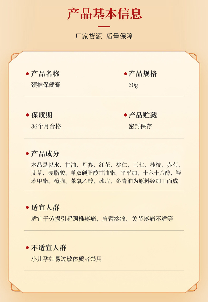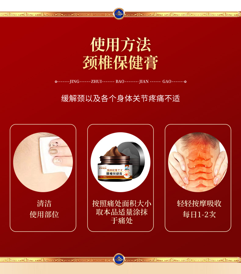 2. Швидкий ефект і тривалий ефект. Використання: рівномірно нанесіть мазь на уражену зону, акуратно помасажуйте до повного вбирання. Масажуйте впродовж 8-15 хвилин для найкращого ефекту.