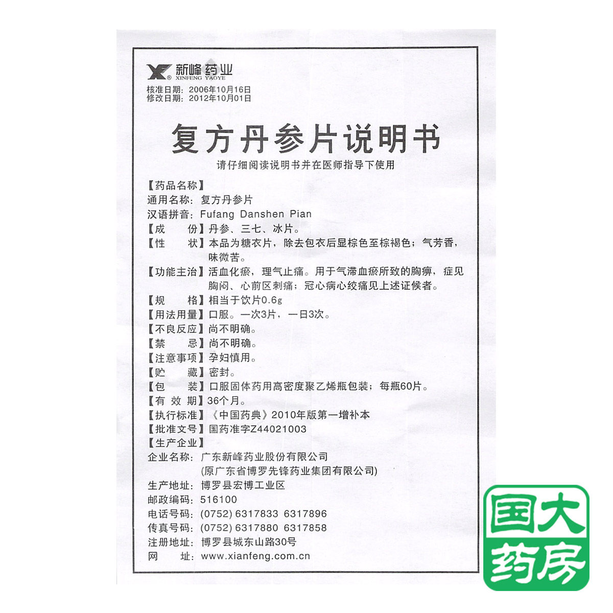 Таблетки Фуфан данина шень п'янь розширюють коронарні артерії, посилюють скоротливу здатність міокарда, покращують метаболізм серцевого м'яза, знижують коагуляцію, посилюють кровообіг, покращують мікроциркуляцію, чинять протиаритмічну дію.
