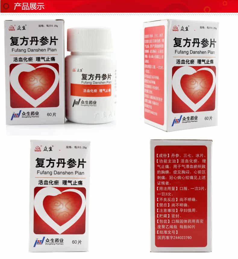 Таблетки проти захворювань серцево-судинної системи Фу Фан Данень Шень Пянь Fufang Danshen Pian 60 шт., фото 1