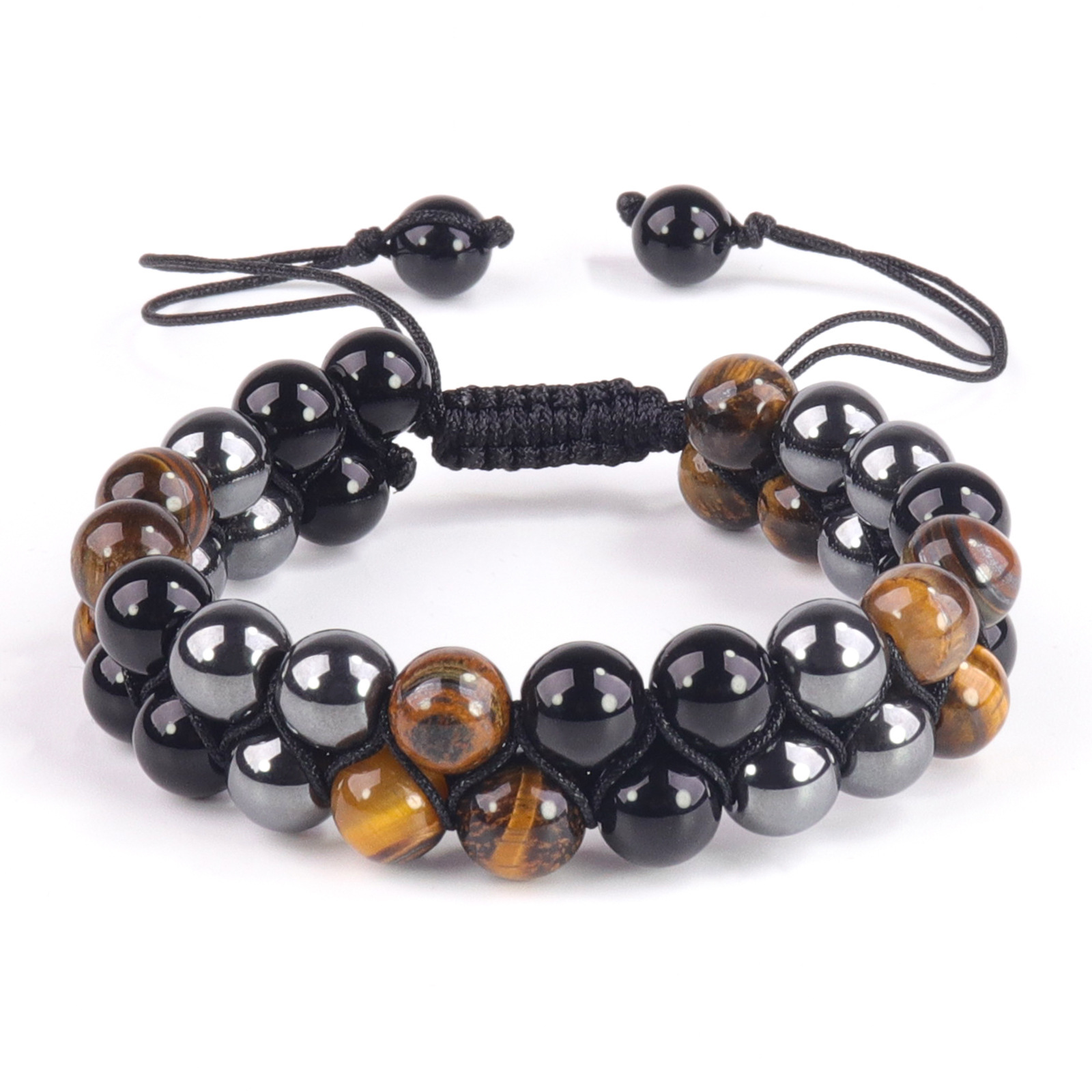 Браслет Шамбала Агат Тигрове око 18 см намистини у два ряди