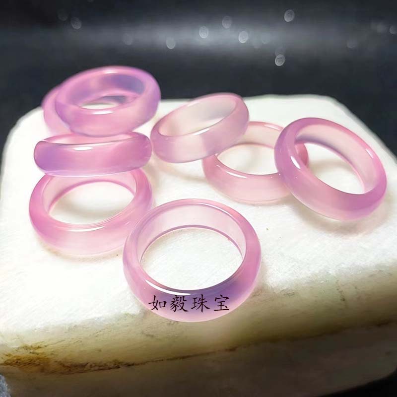 Суцільнокам'яне кільце з халцедону світло-світло-рожевого кольору. Напівпрозоре, гладке.