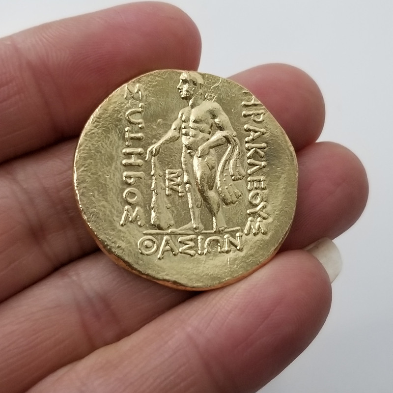 Тетрадрахма з Тасоса, римської епохи: зображує голову молодого Діоніса, увінчану плющем. Він датується 2 століттям до нашої ери. (після 148 р. до н.е.), має діаметр 30 мм і вагу 16.92 грами. На реверсі зображений Геракл у левовій шкурі, з посохом і написом «IRAKLEUS SOTIROS TASION», що означає «Геркулес, рятувальник Тасоса».