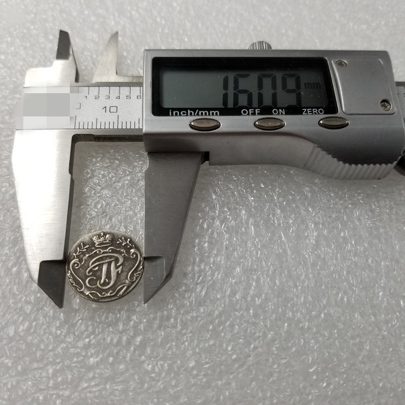 Сувенір за основними характеристиками максимально відповідну оригіналу. Якісне покриття сріблом високого проби, зістарений зовнішній вигляд. Приблизний діаметр 15 мм. Метал — срібло покриттям, гурт — рубчастий