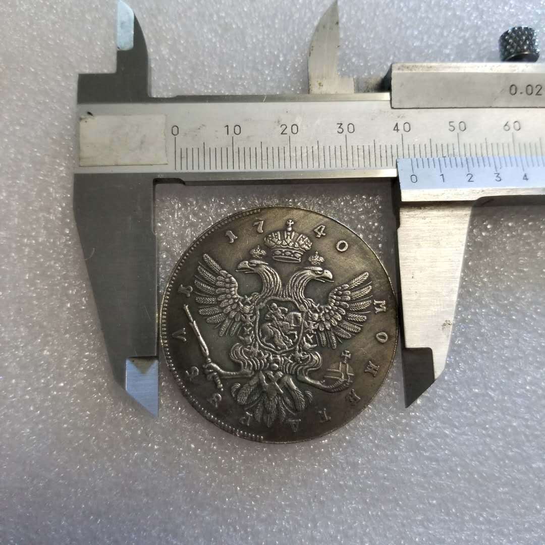 Срібний рубль 1740 року почепився на Червоному монетному дворі в останній рікряджання Самдержиці Анни Івановни. Більшість істориків періоду правління Анни називають біроновченою, від імені її фаворита, Ернста Бірона, графа Римської імперії. На лицьовій стороні зображений портрет Анни в профіль із короною на голові. На звороті традиційна символікароссійської імперії — двоголовий орел, у лапах якого скіпетр і держава. По колу відчеплений напис МОНЕТА РУБЛЬ 1740.