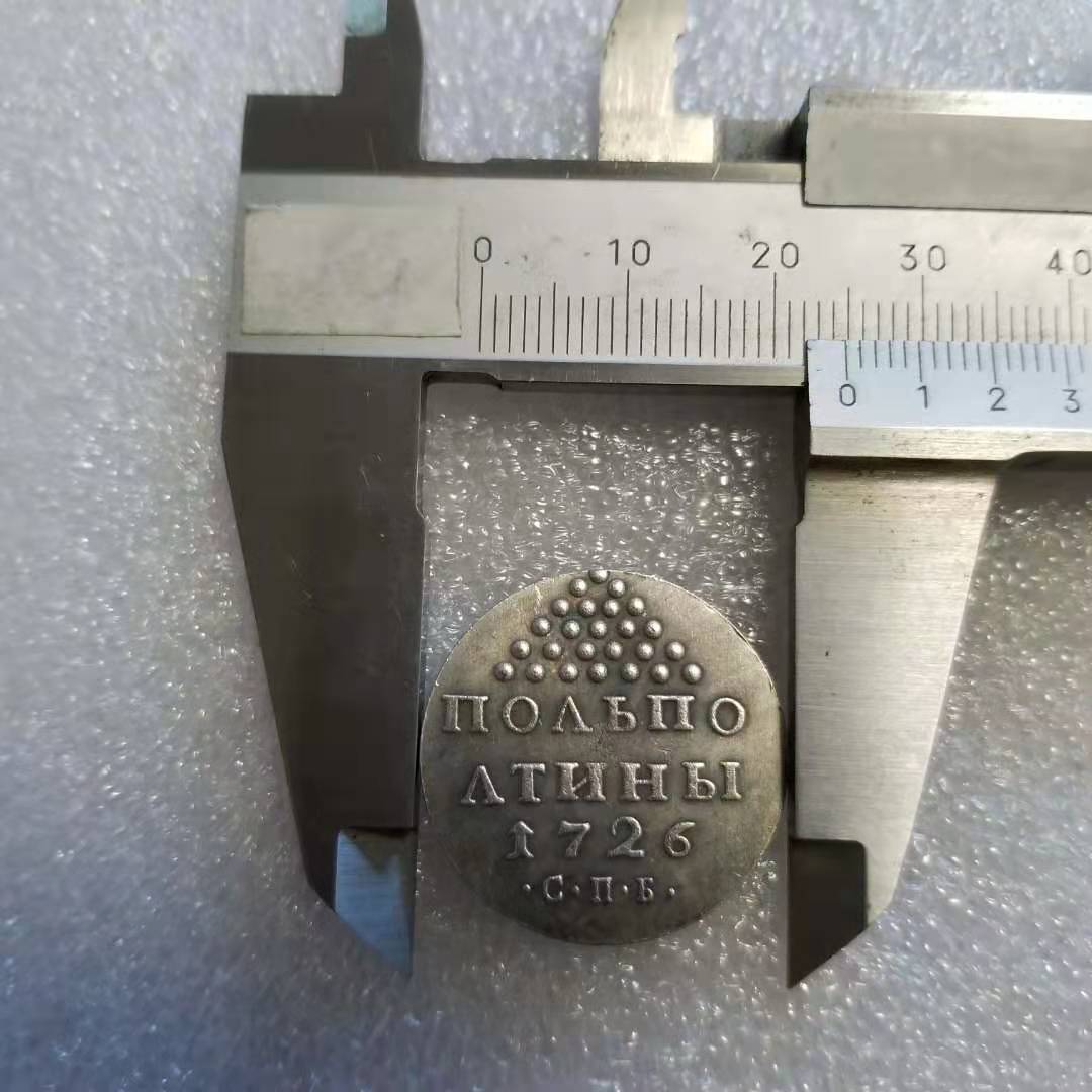 Пробна монета царської Росії срібна півполотина 1726 року. Монети чоканилися на Санкт-Петербурзькому монетному дворі, до складу сплаву додавався миш'як, тому монети швидко псувалися й мали незадовільний зовнішній вигляд. Вже 1728 року монети стали вийматися з поводження і вирушали на переплавку, звідси їхня виняткова рідкість.