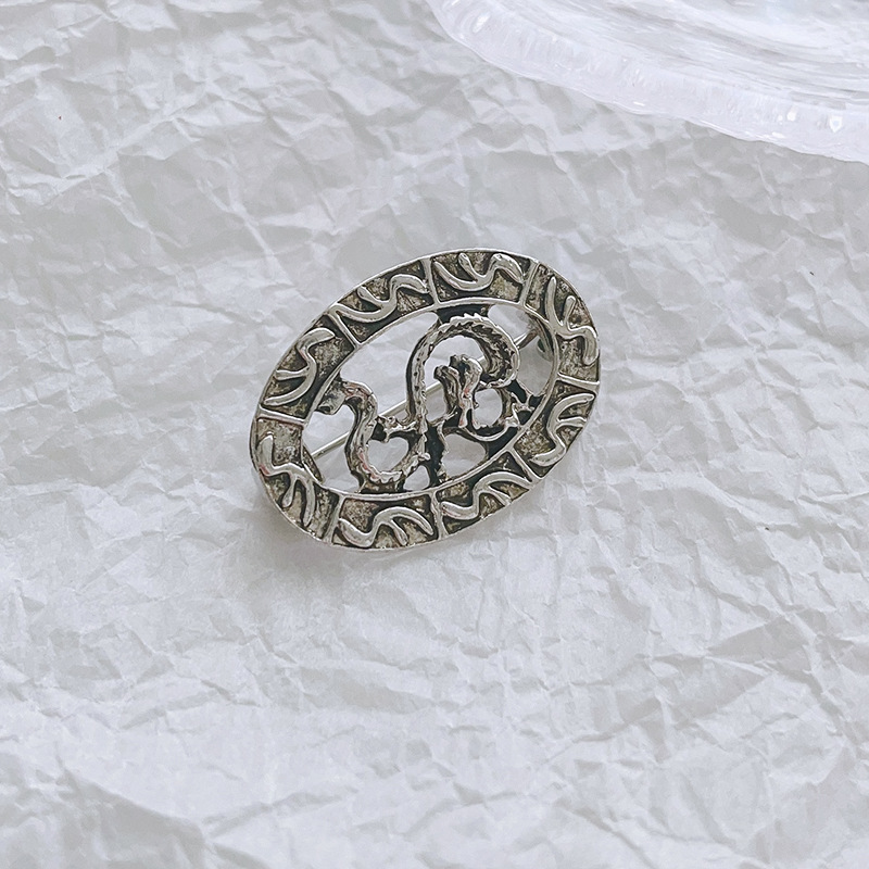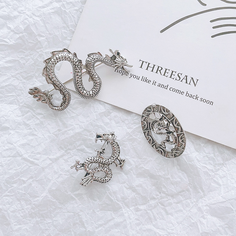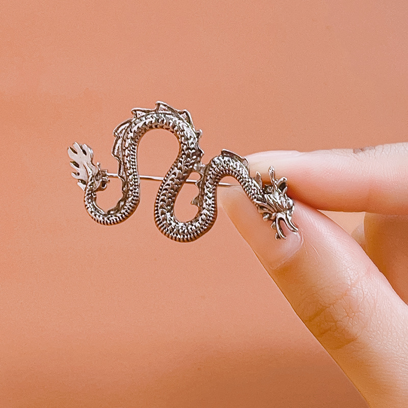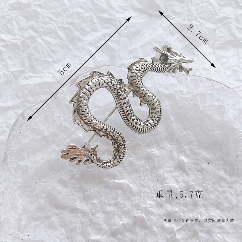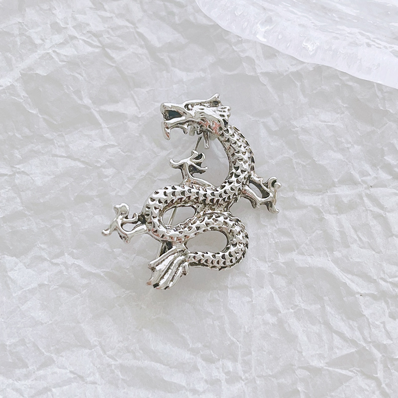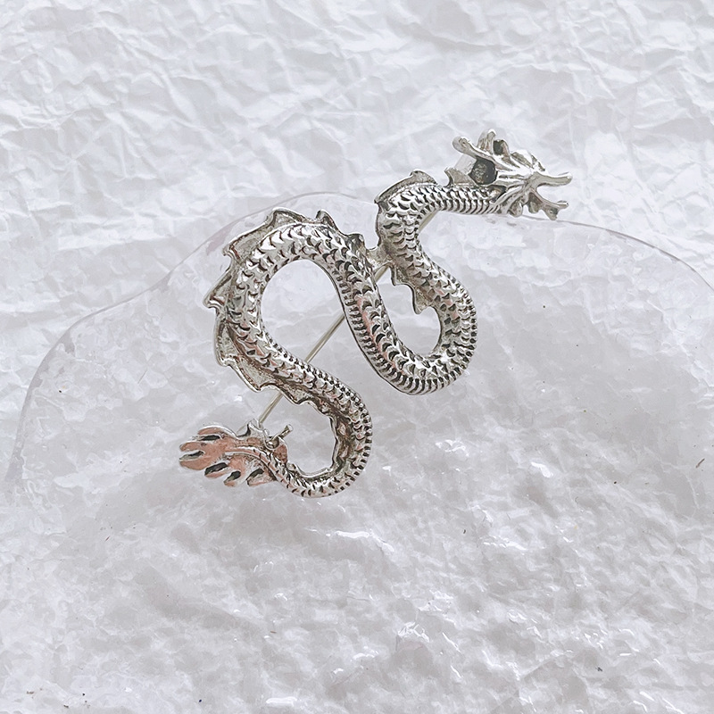 Брошка-кулон Сріблястий Дракон, символ 2024г
