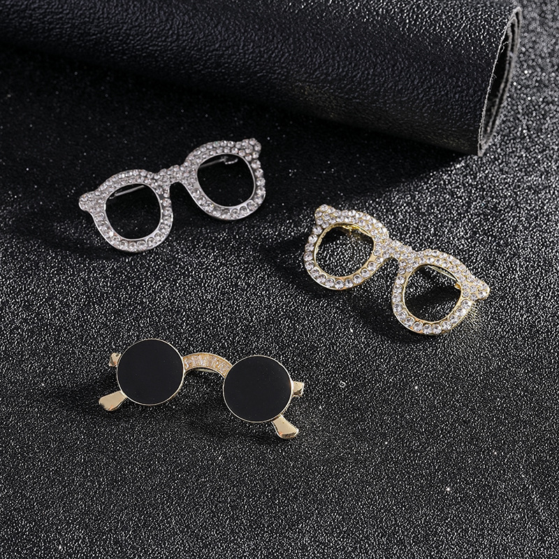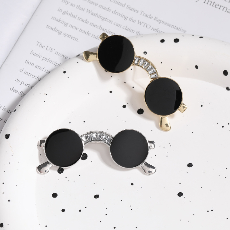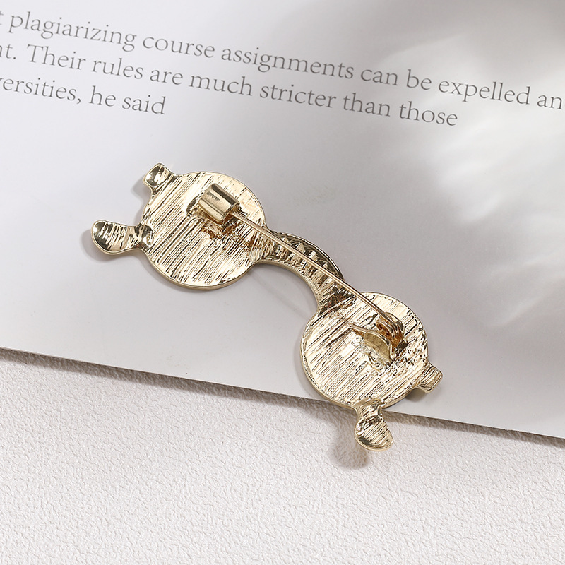 Брошка у формі окулярів зі стразами, зі сплаву, шпильки для коміра, бейдж піни для рюкзака