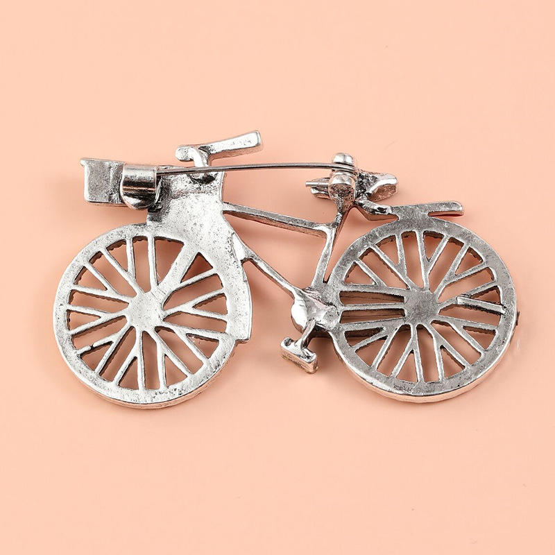 Брошка кріпиться на одяг за допомогою шпильки, яка вдало вписується в роль рами цього декоративного велосипеда.