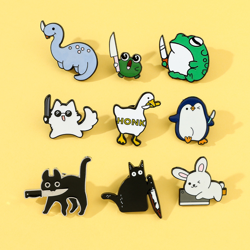 Кумедний пін у формі кота з ножем, цей значок із задоволенням прикрасить твій рюкзак, футболку або джинсовку.