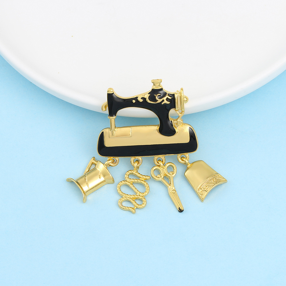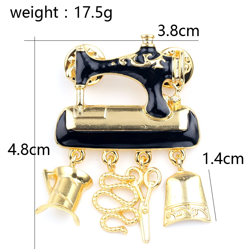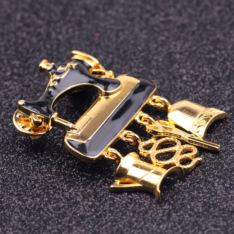 Брошка-значок у формі чорної Швейної машинки з підвісками, піни подарунок швії, кравцеві