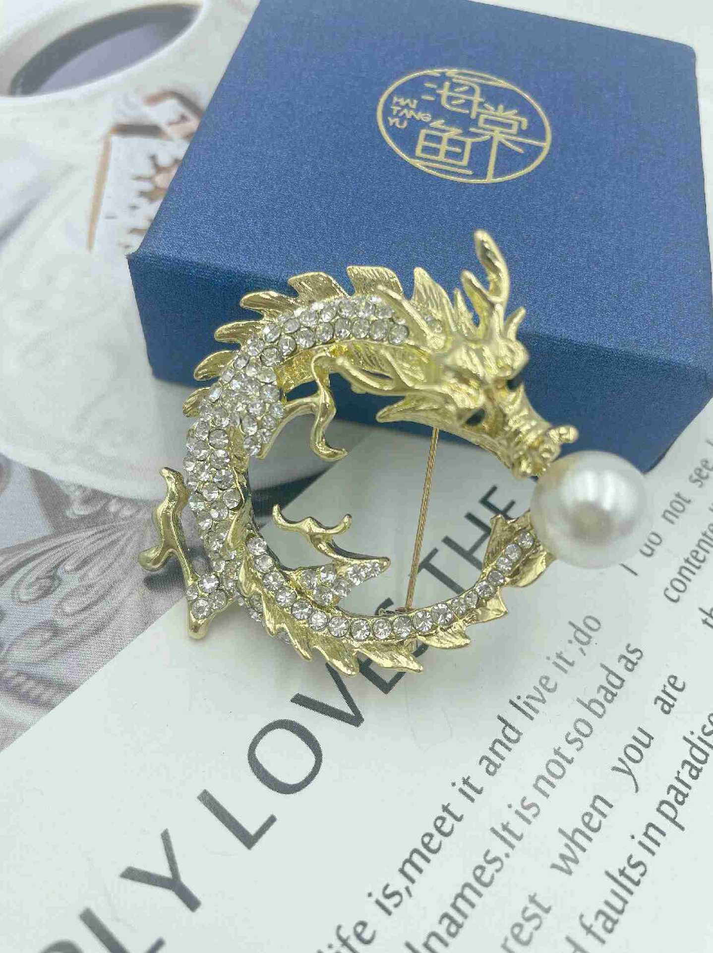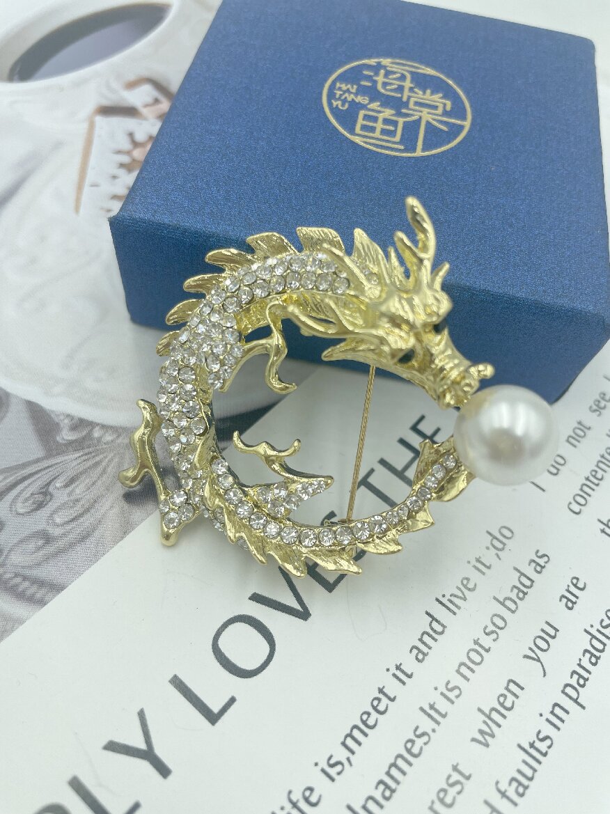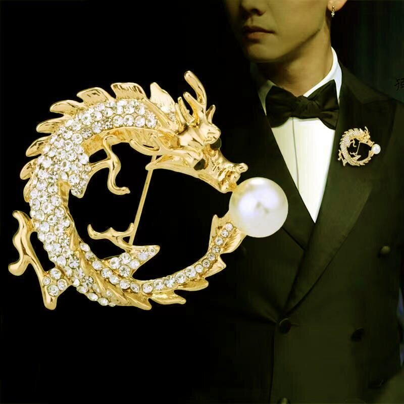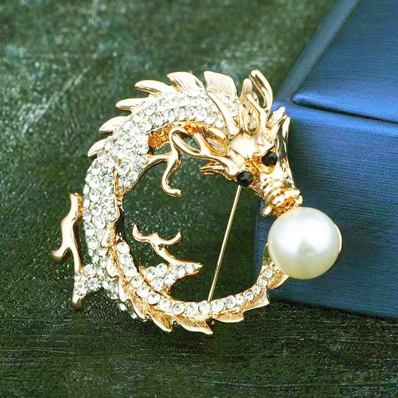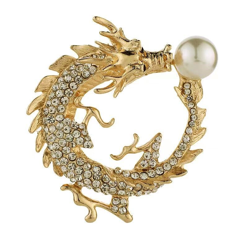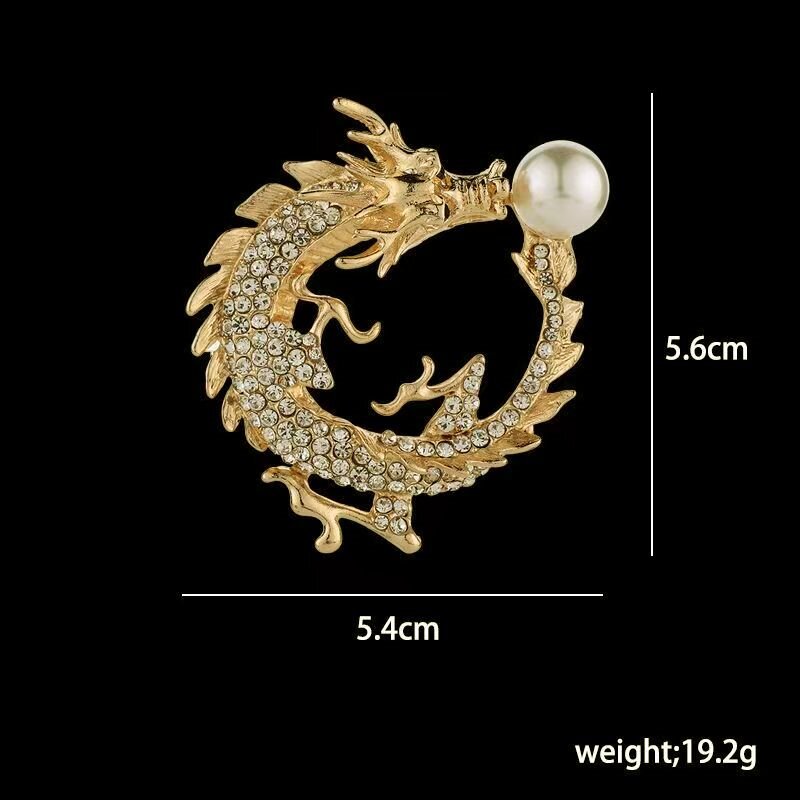 Брошка у формі Дракона з перлиною, елегантна брошка для костюма, брошка на комірі